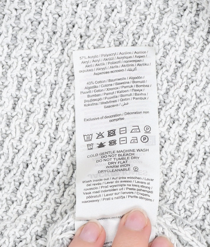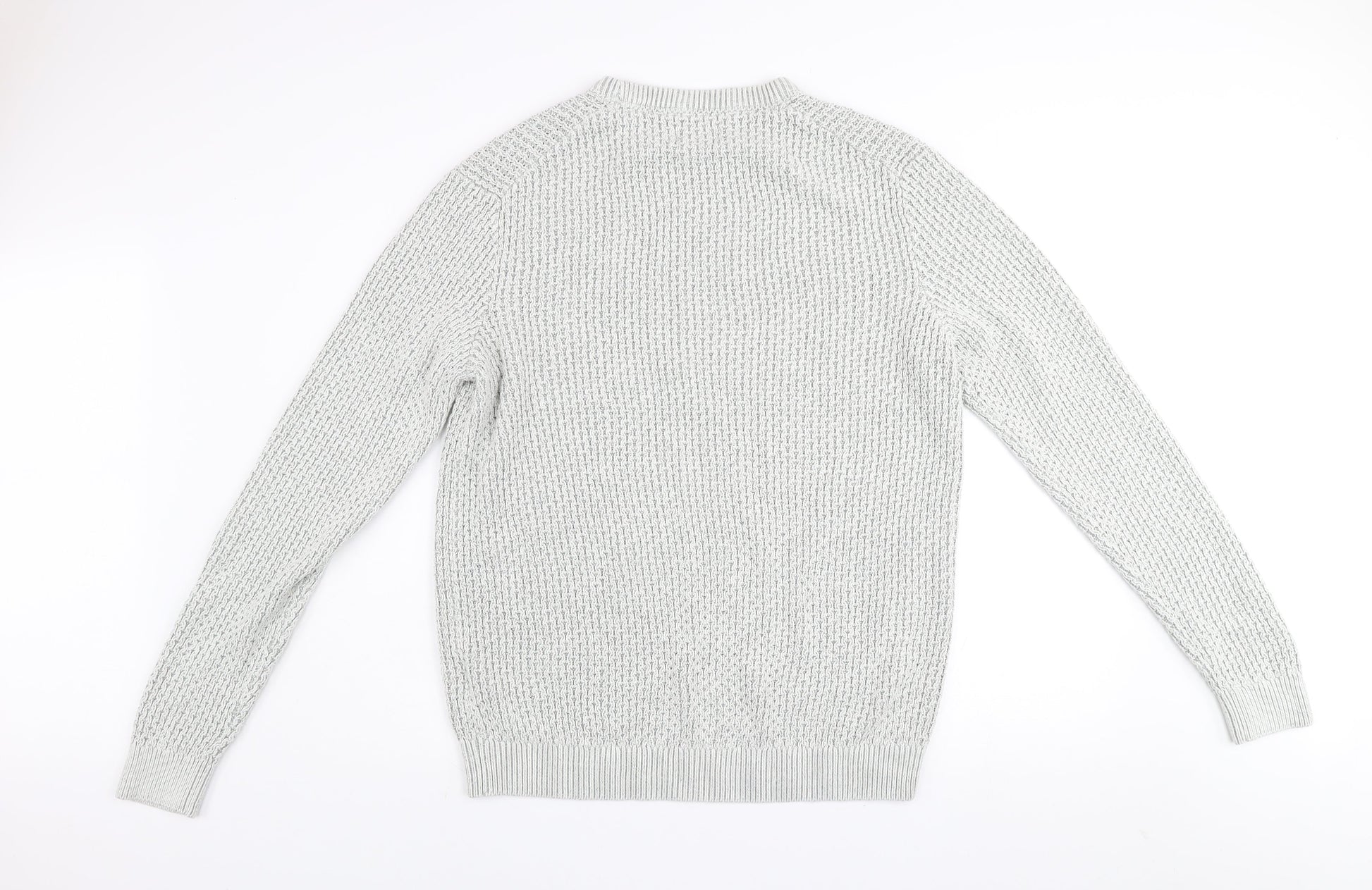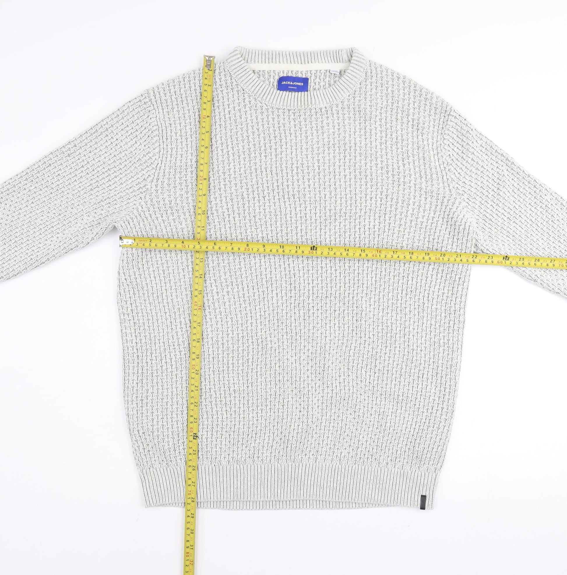 Jack & Jones Men's Grey Waffle-Knit Crew Neck Jumper Size S