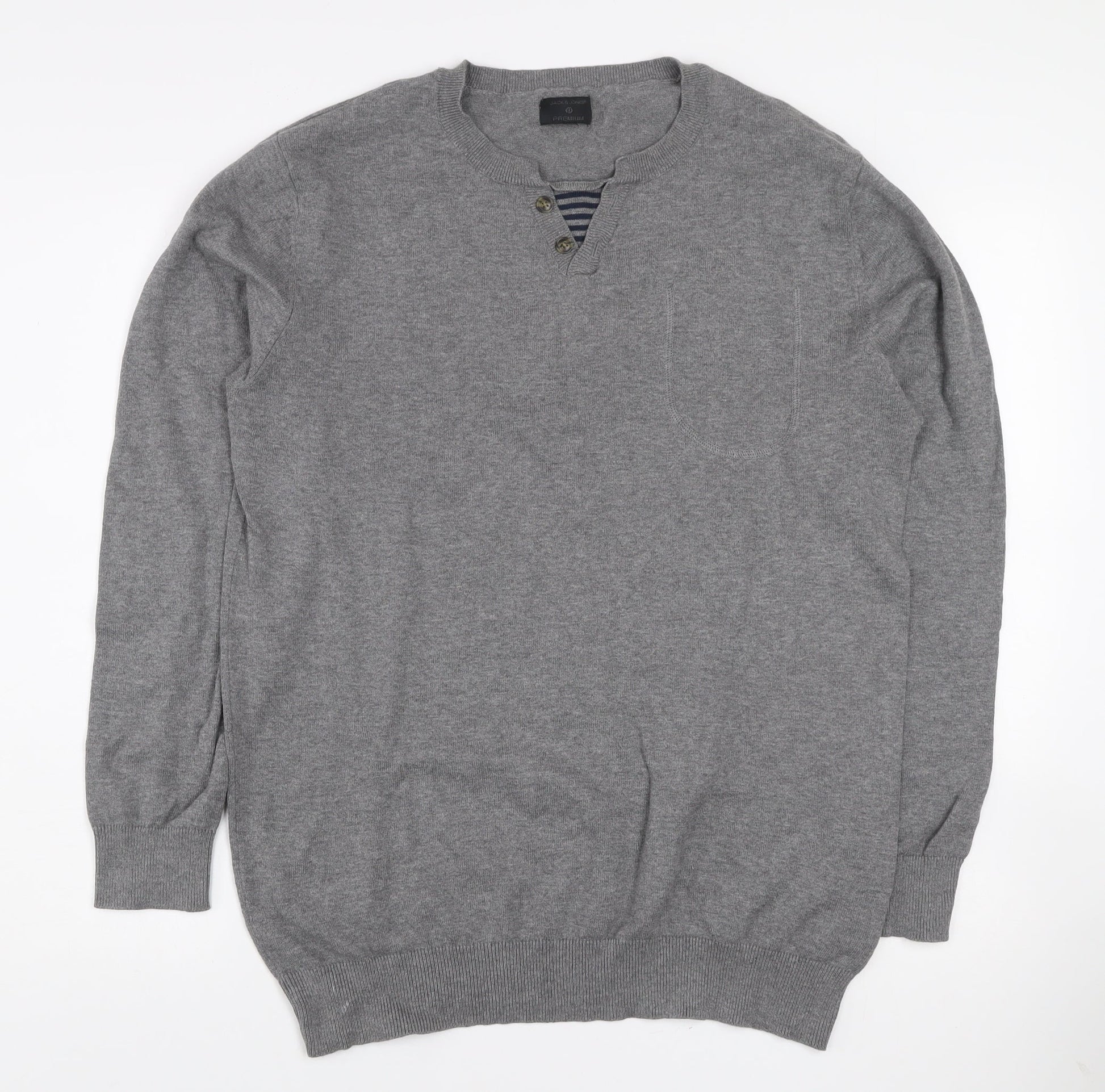 Jack & Jones Mens Grey XL Henley Cotton Knit Jumper