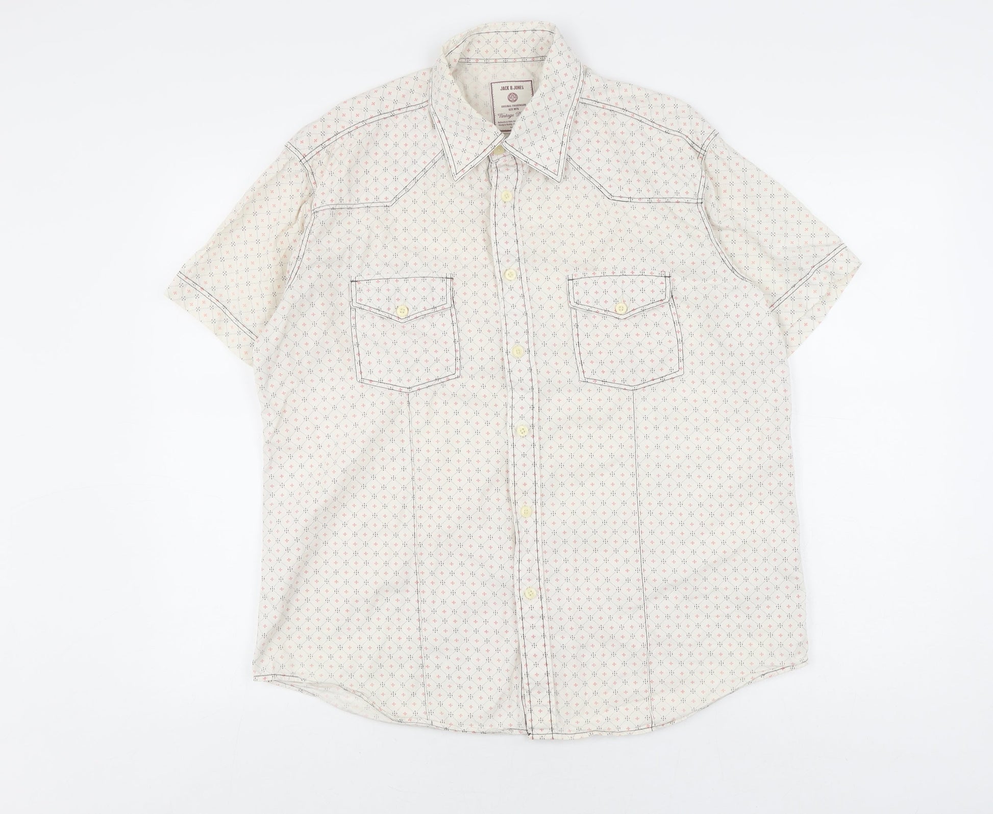 Jack & Jones Men's L White Geometric Short Sleeve Shirt
