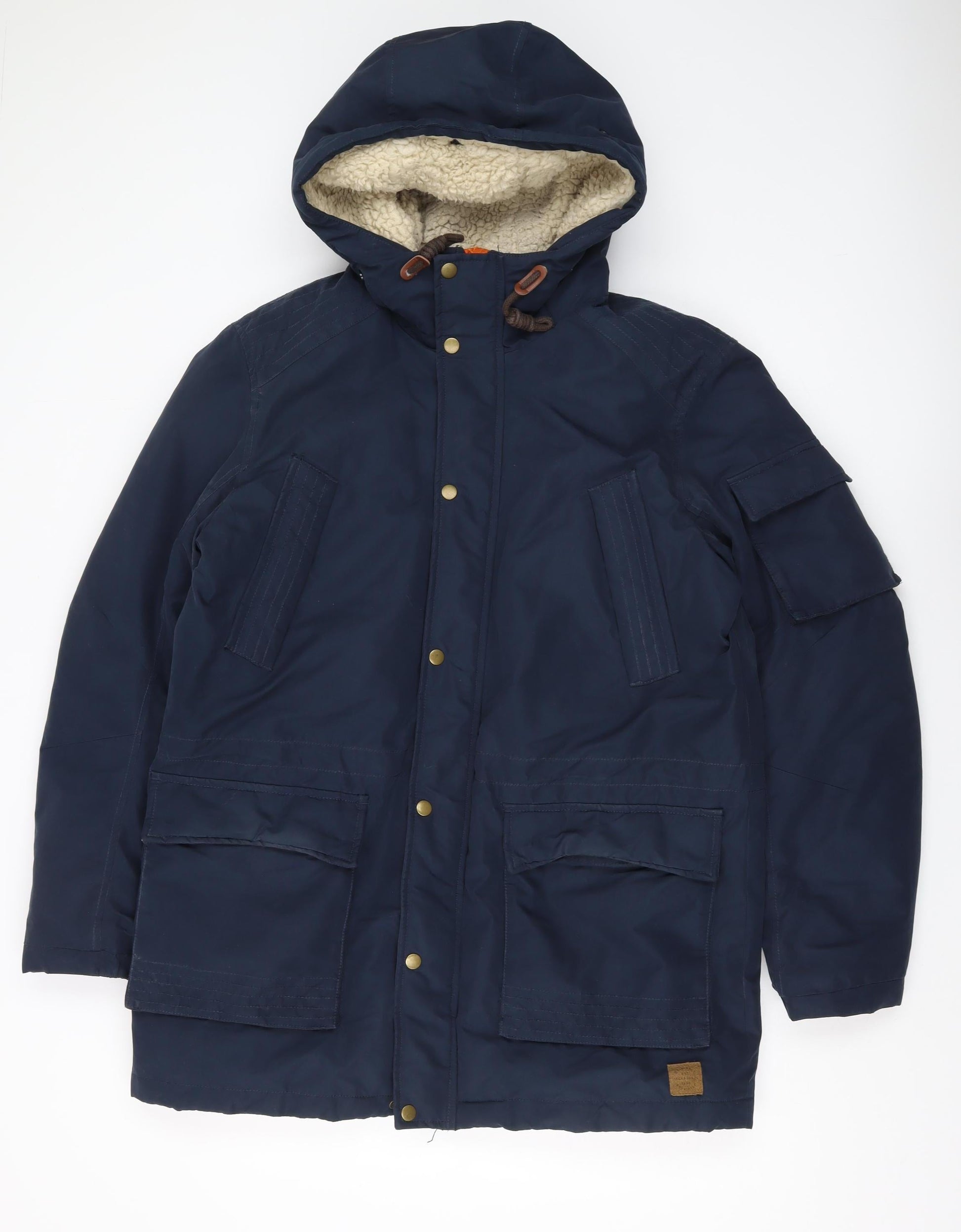 Jack & Jones Men's Large Blue Hooded Parka Jacket