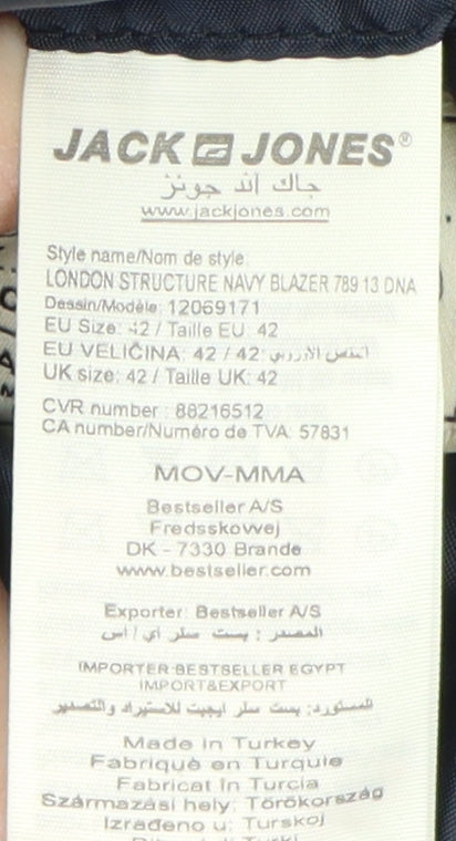 Jack & Jones Men's Navy Blazer 42 Wool Classic Fit