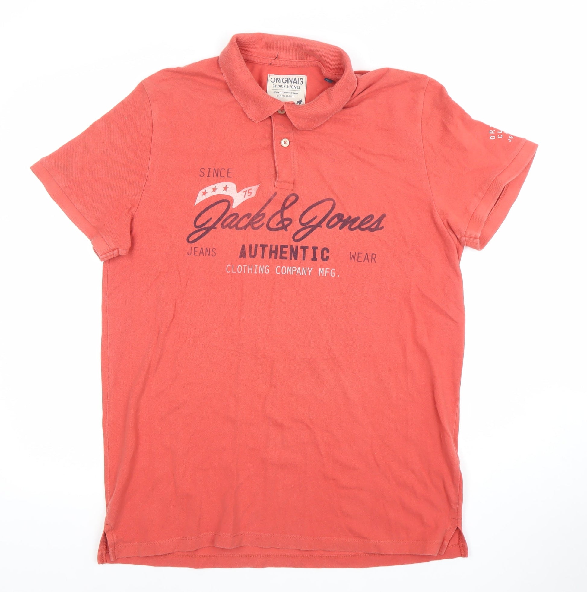 Jack & Jones Men's Red XL Polo Shirt Authentic Graphic Cotton