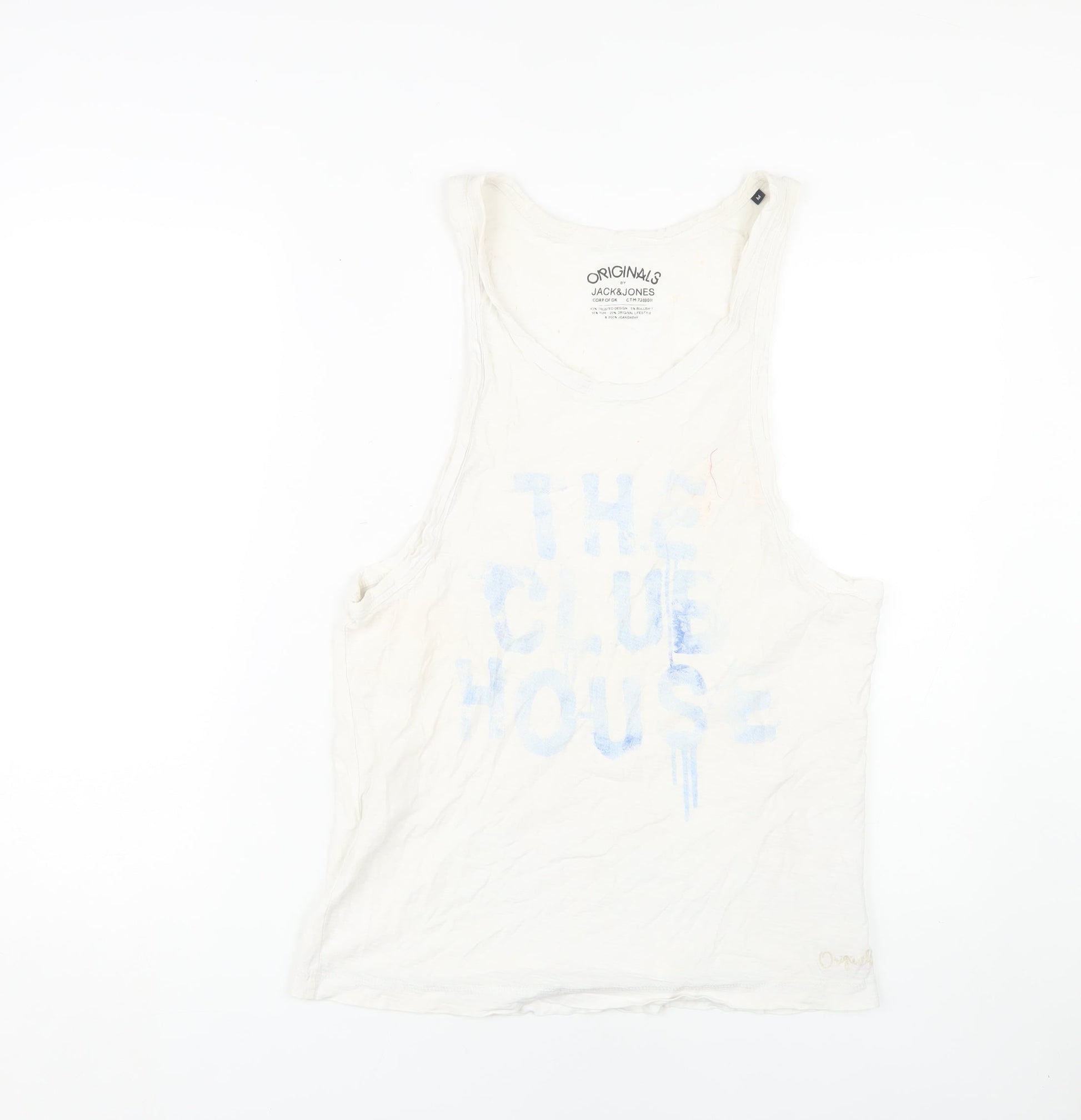 Jack & Jones Men's White Crew Neck Sleeveless T-Shirt M