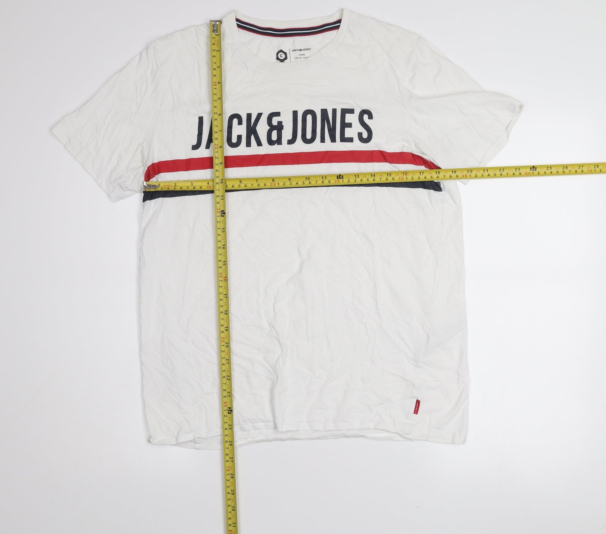 Jack & Jones Men's White Graphic Core T-Shirt L Crew Neck