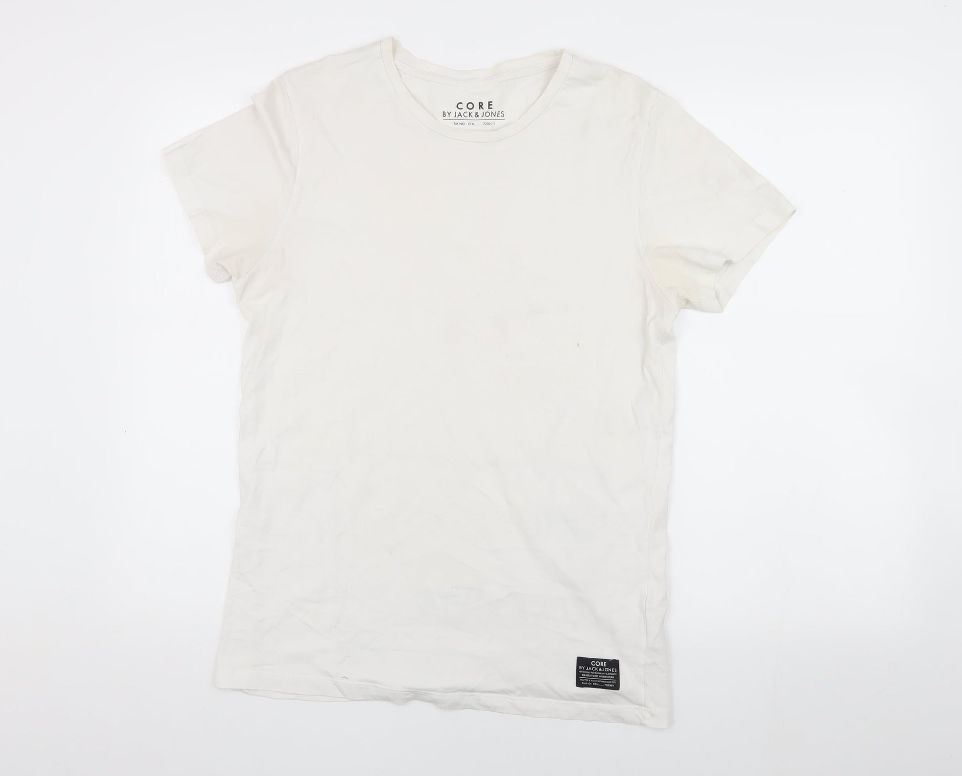 Jack & Jones Men's White Medium T-Shirt, Crew Neck Casual