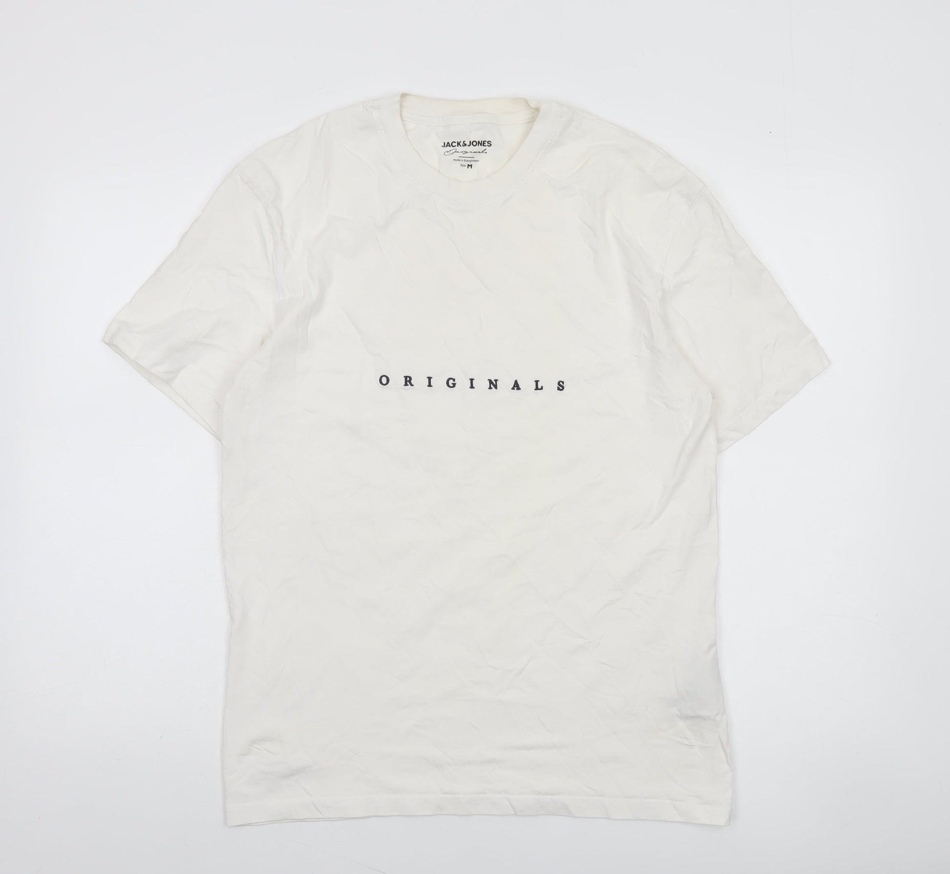 Jack & Jones Men's White Originals Crew Neck Cotton T-Shirt Size M