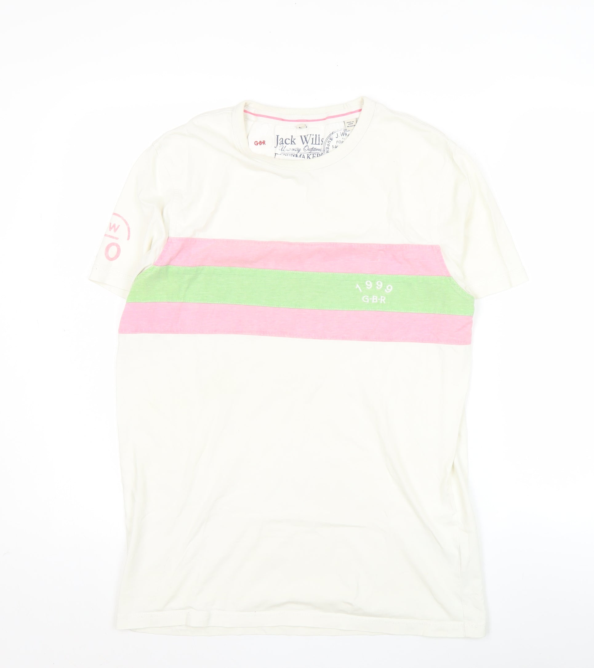 Jack Wills Men’s White Colourblock T-Shirt Size S Retro College Style