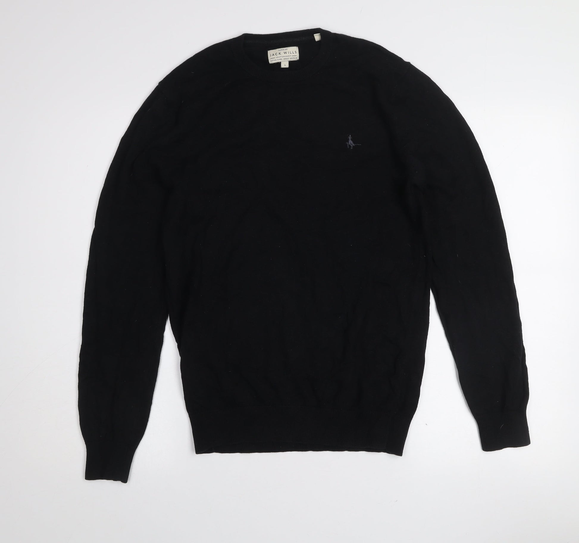 Jack Wills Men's Black Cotton Cashmere Crew Neck Jumper Size S