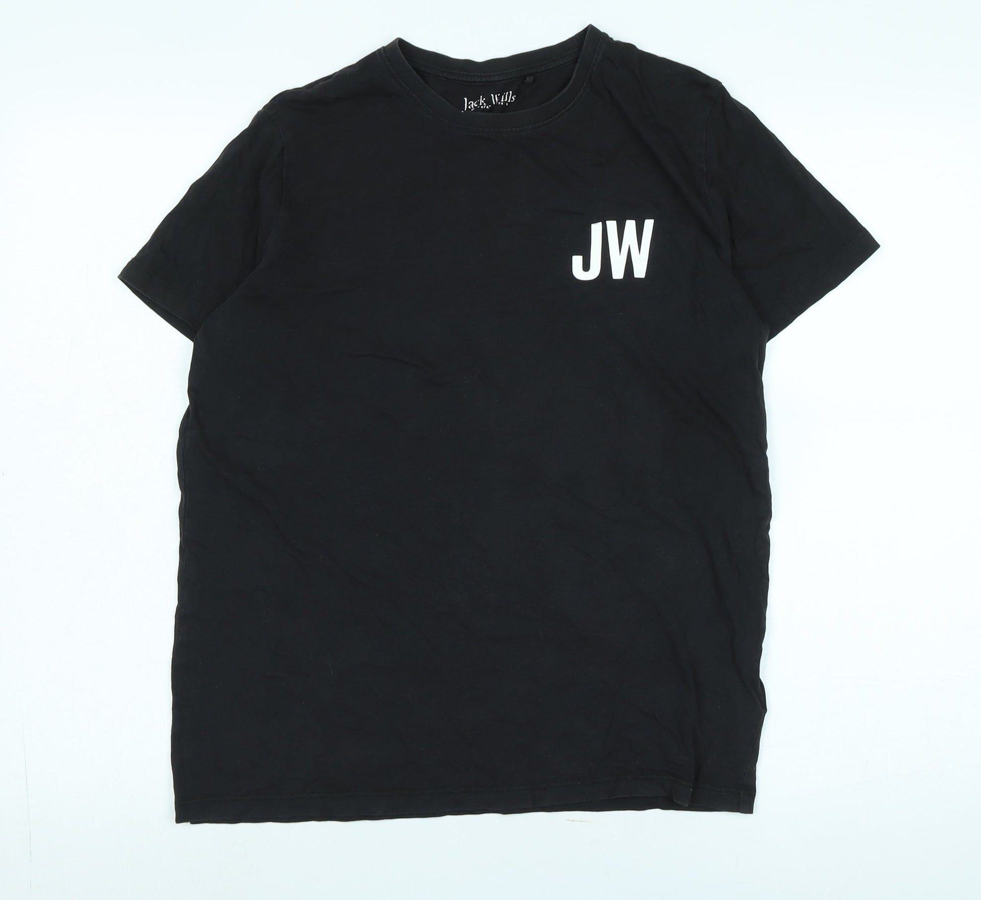 Jack Wills Mens Black Cotton T-Shirt Size S Crew Neck - Logo