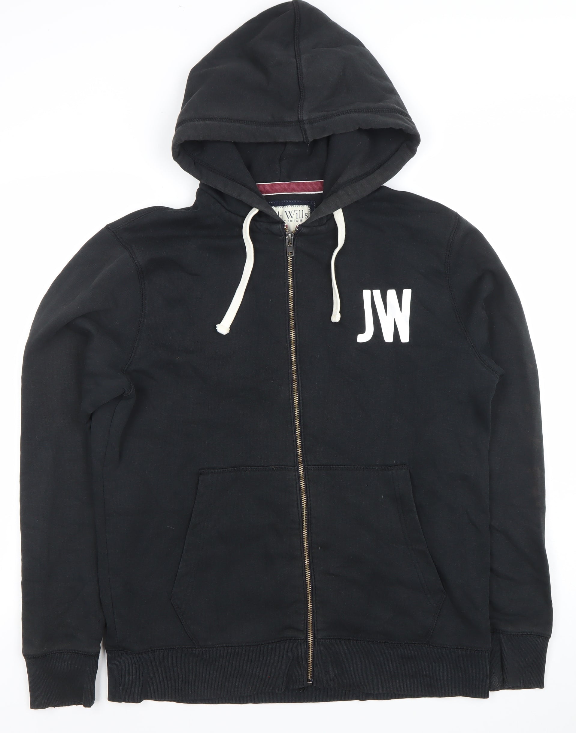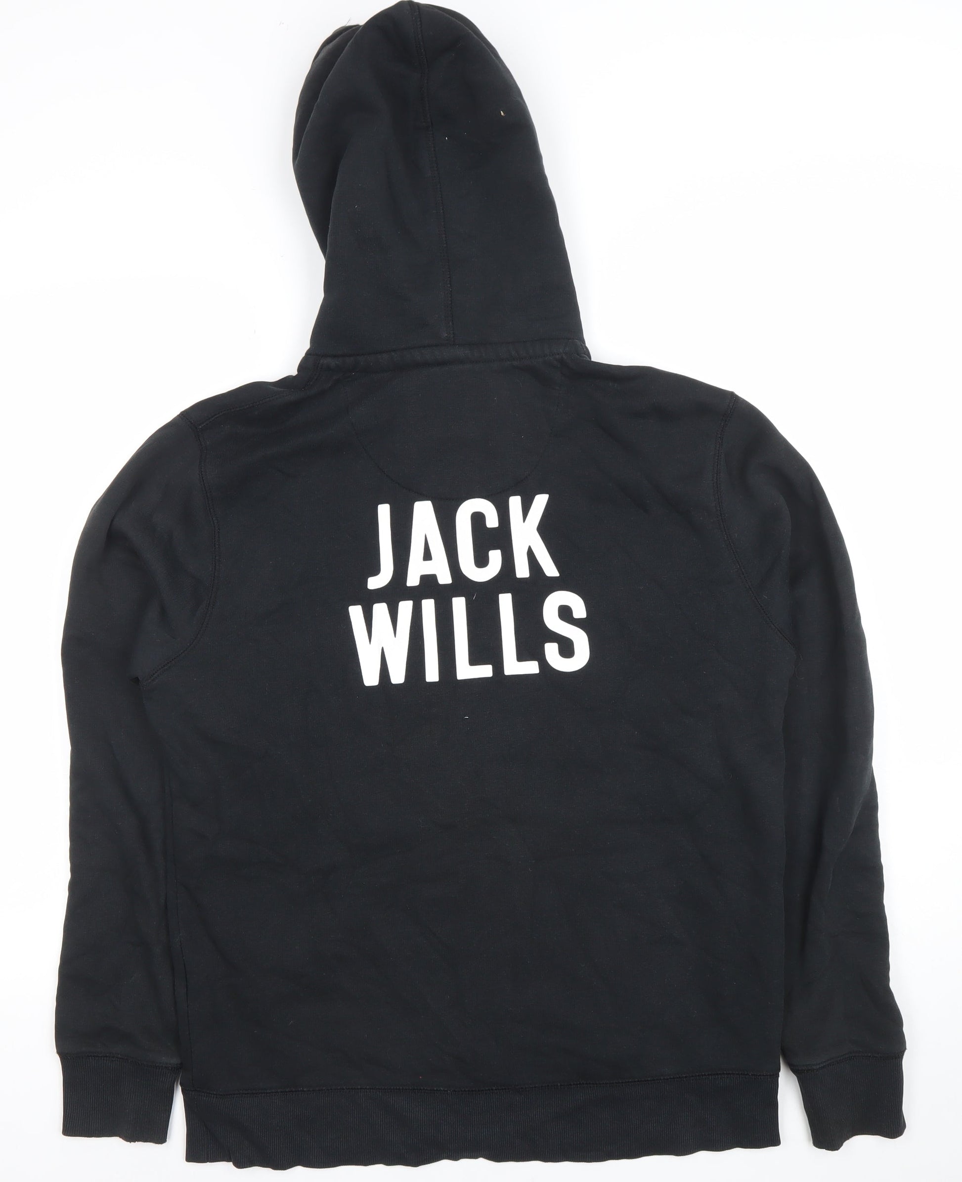 Jack Wills Men's Black Full Zip Hoodie M Logo Print Sweatshirt