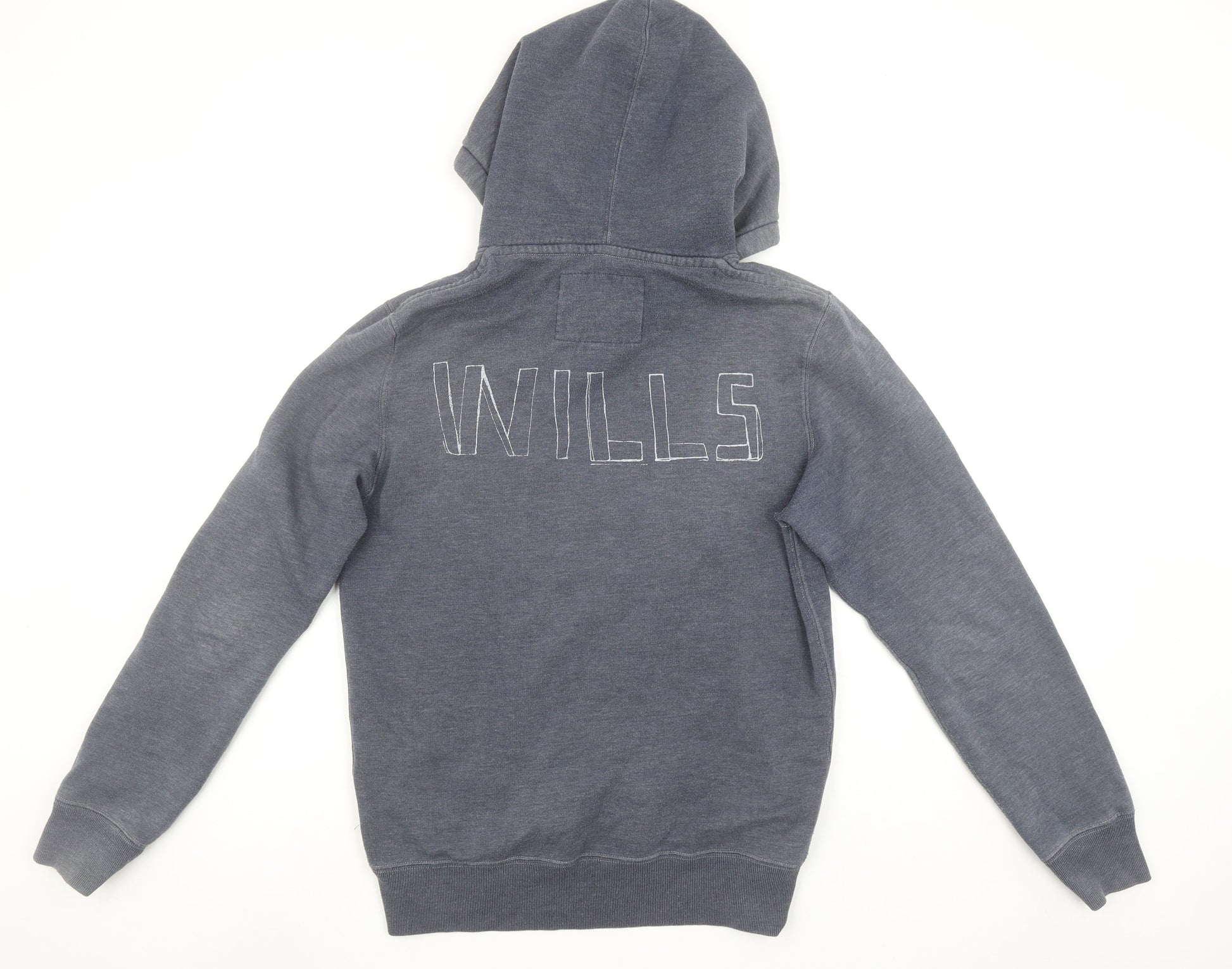 Jack Wills Men's Blue Pullover Hoodie S Logo Embroidered Fleece