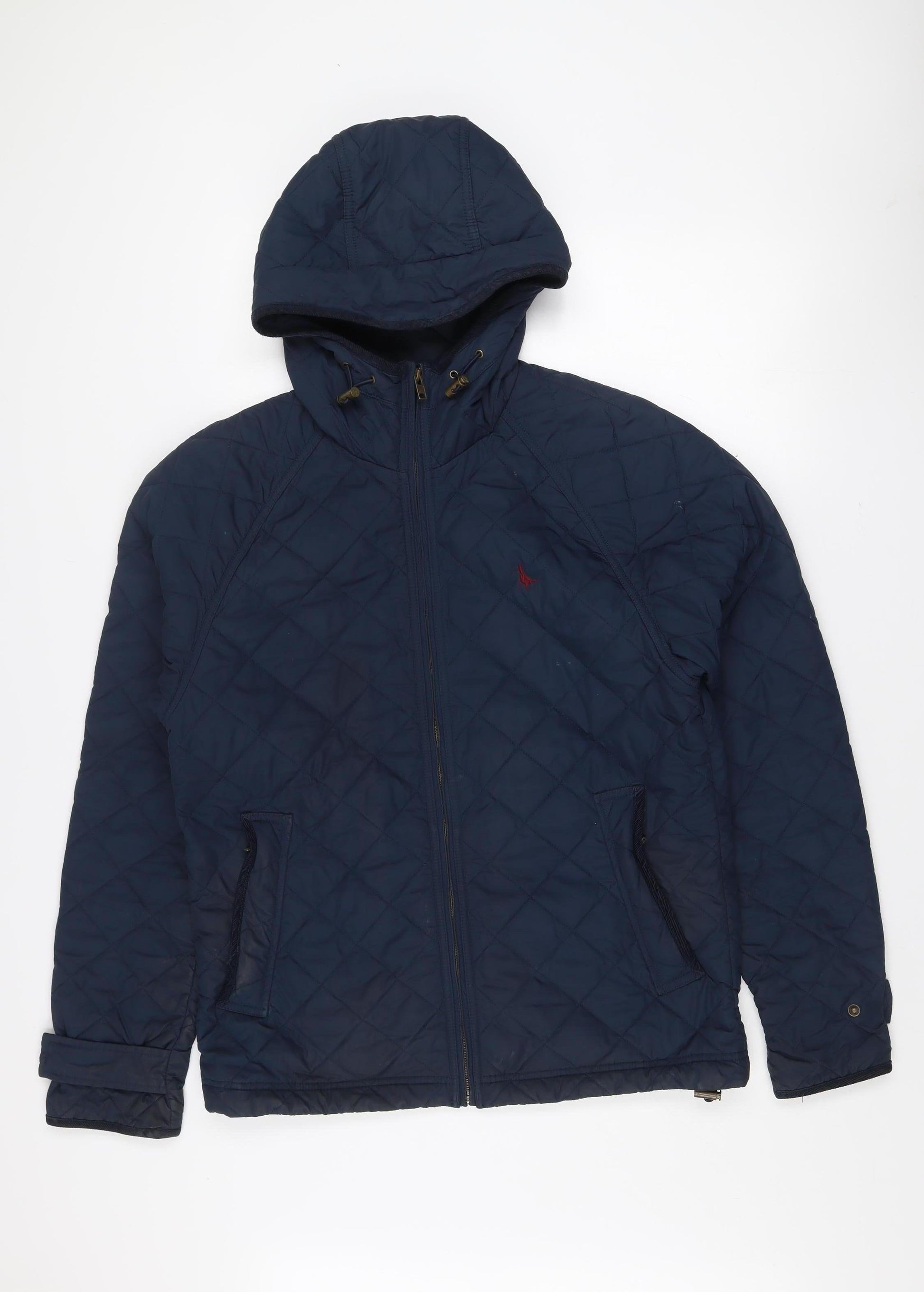 Jack Wills Men's Blue Quilted Hooded Jacket L Cotton Lined