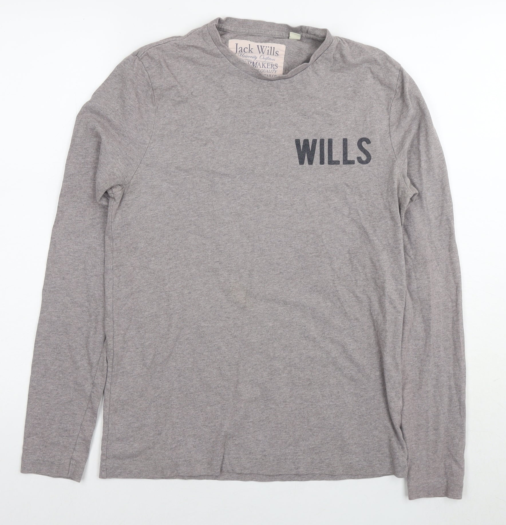 Jack Wills Mens Grey Cotton T-Shirt Size XS Round Neck - Logo British Flag