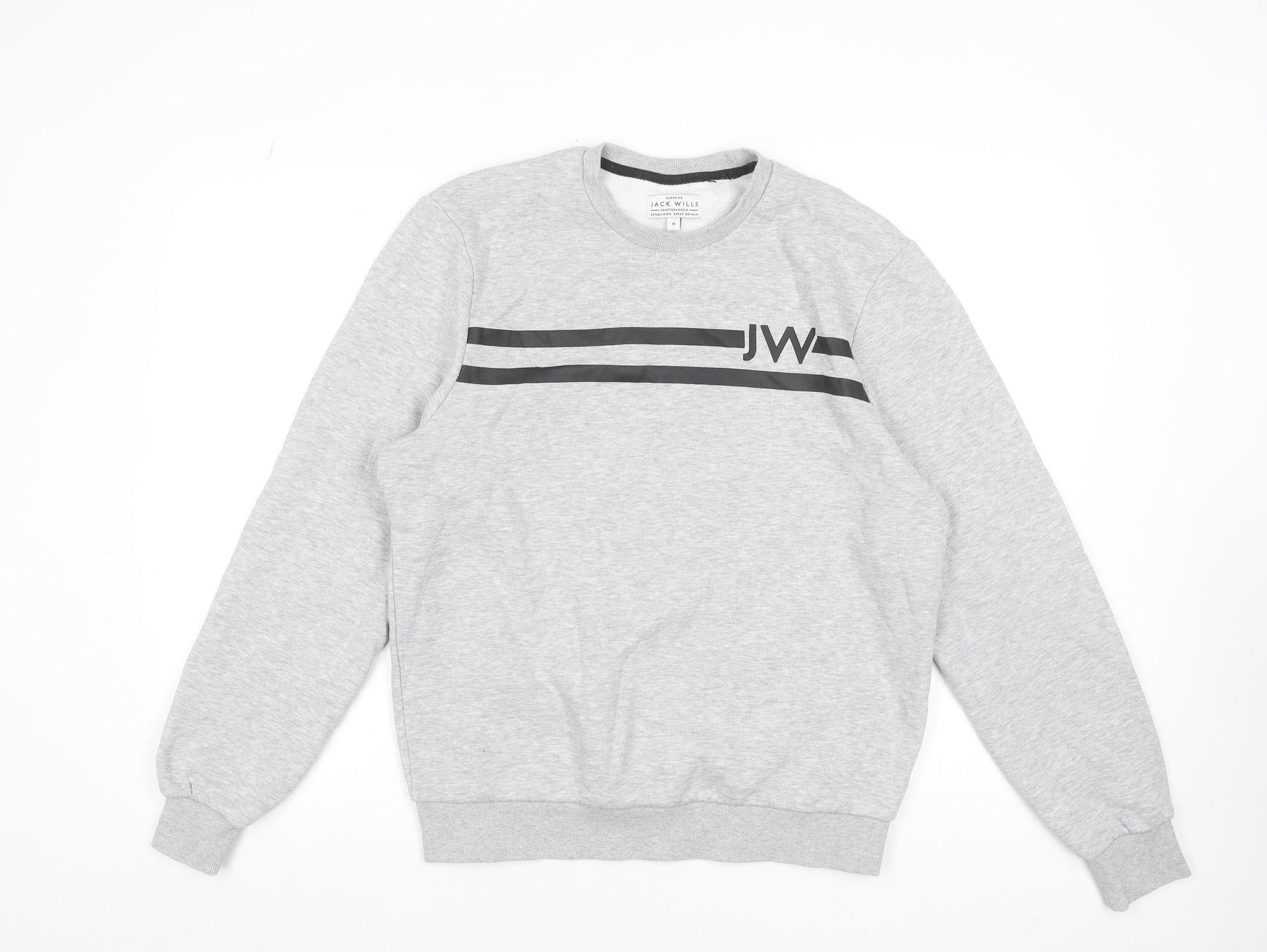 Jack Wills Men's Grey Crew Neck Logo Sweatshirt Size M