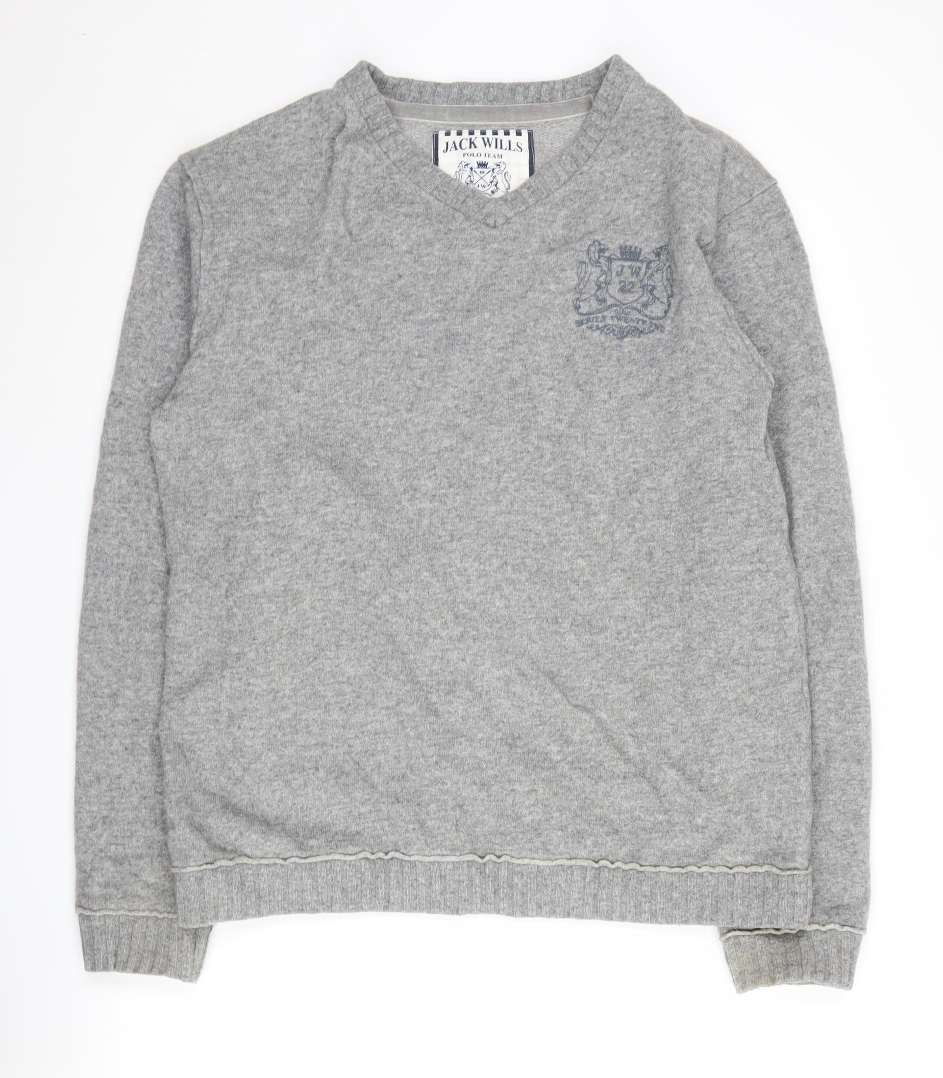 Jack Wills Men's Grey Wool Blend V-Neck Jumper Large
