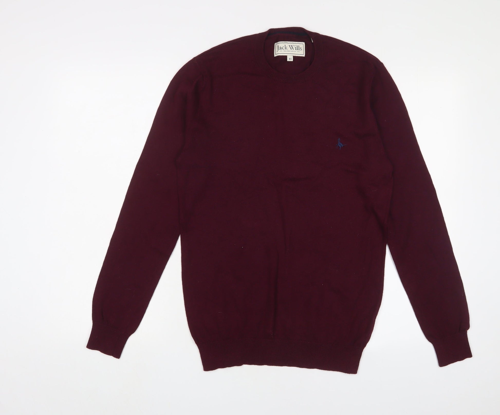 Jack Wills Mens Red Crew Neck Cotton Pullover Jumper Size XS Long Sleeve - Logo, Embroidered