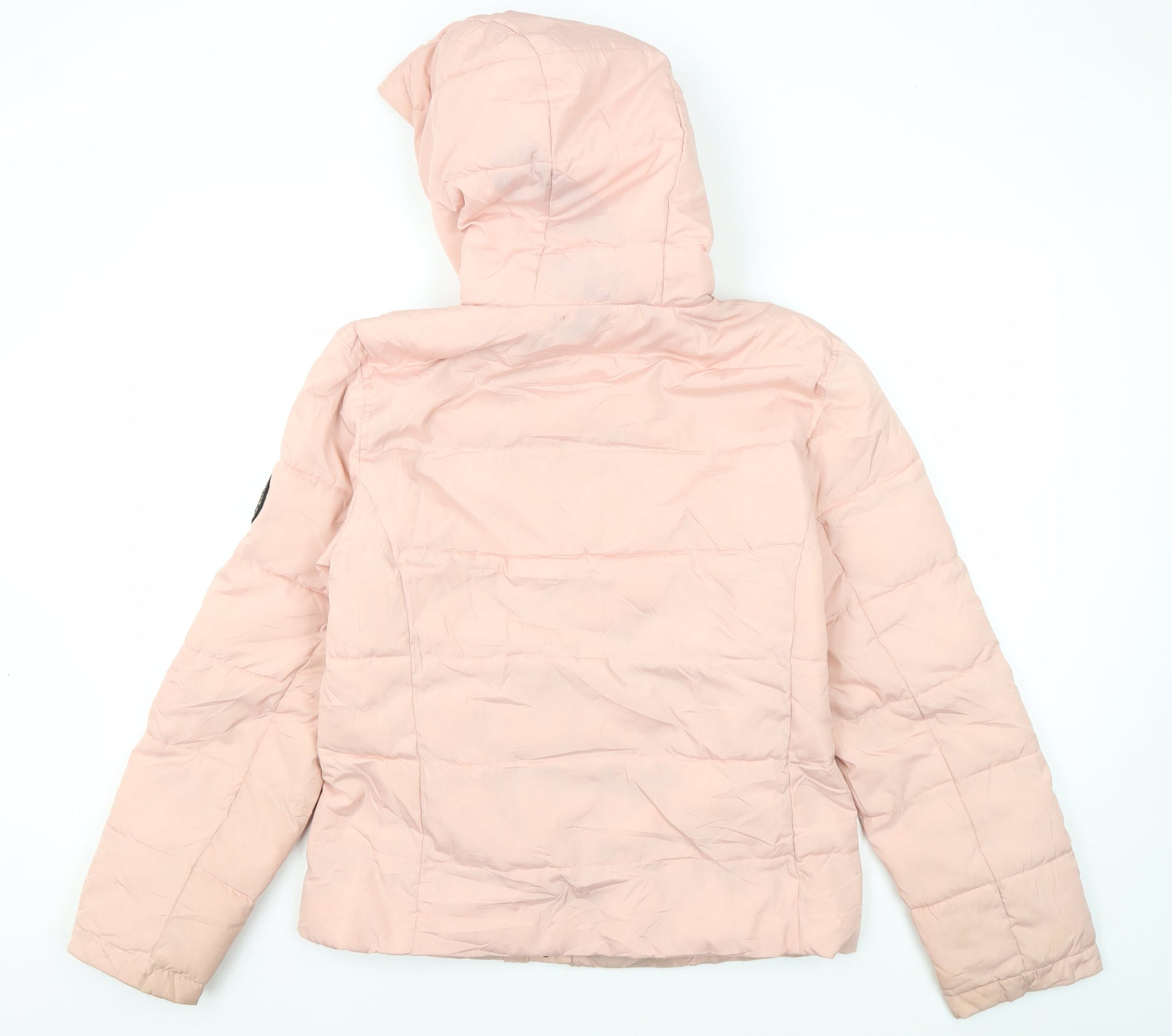 Jack Wills Pink Puffer Jacket Women Size 12 Hooded