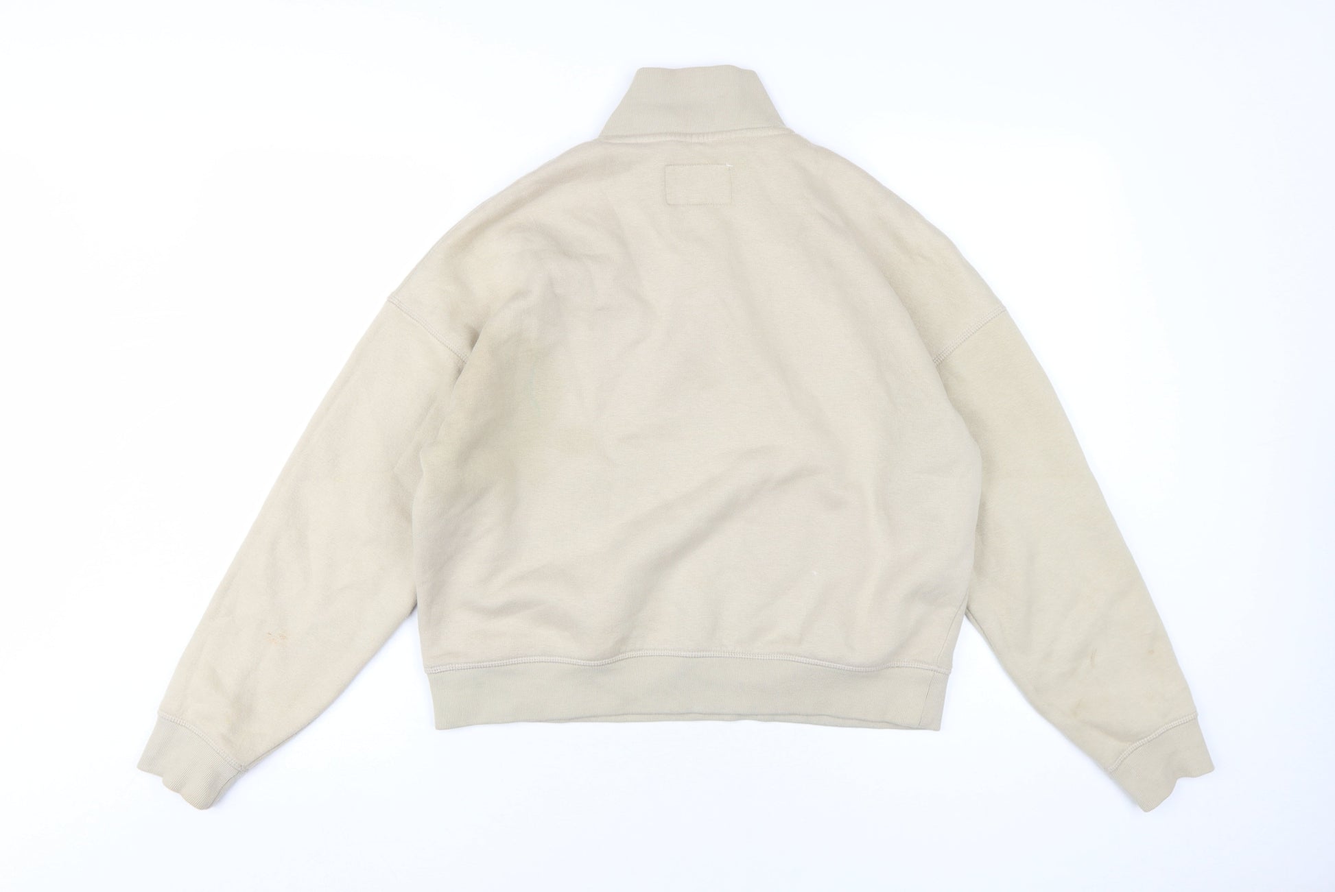 Jack Wills Women Beige Pullover Sweatshirt, Size 10, Zip Neck
