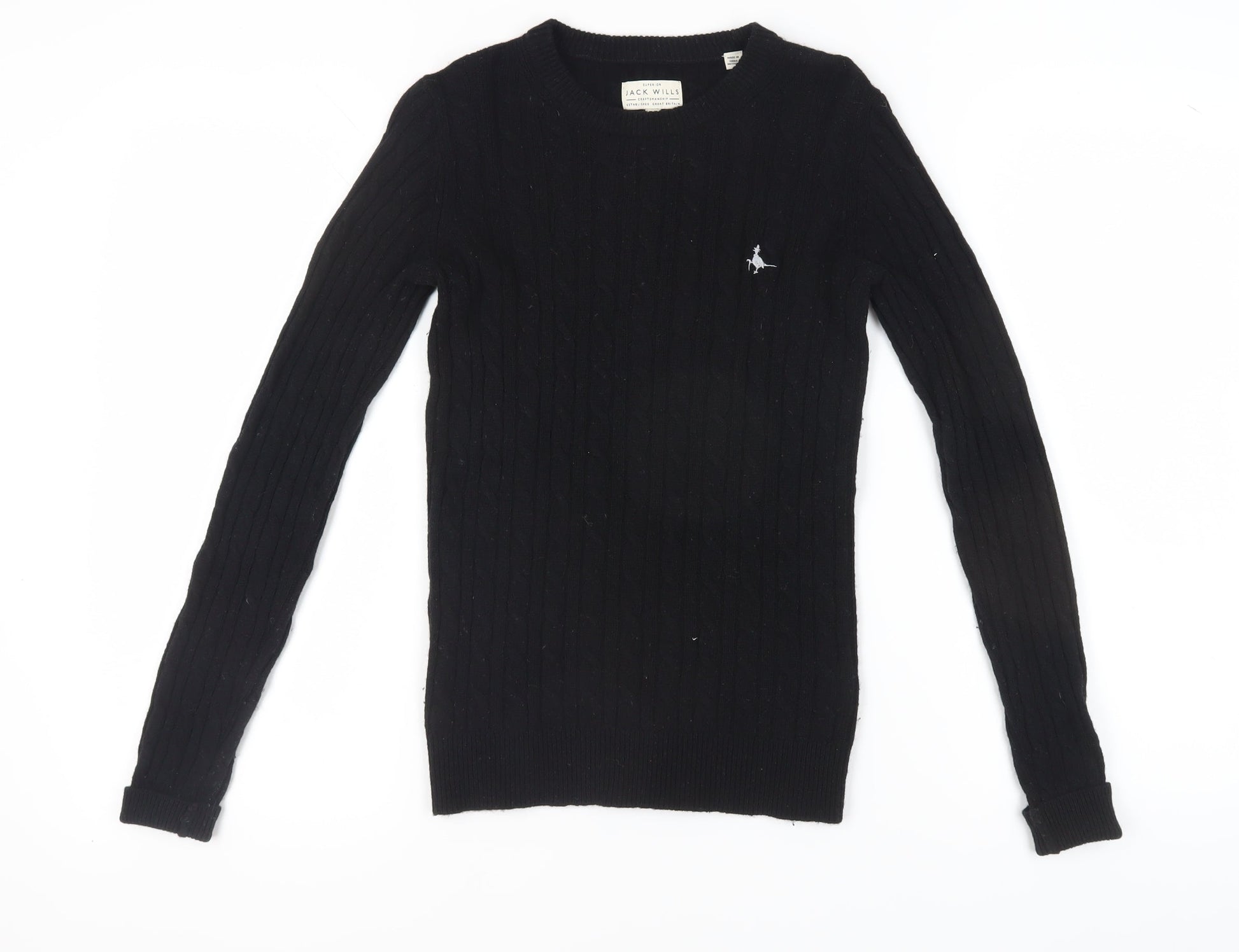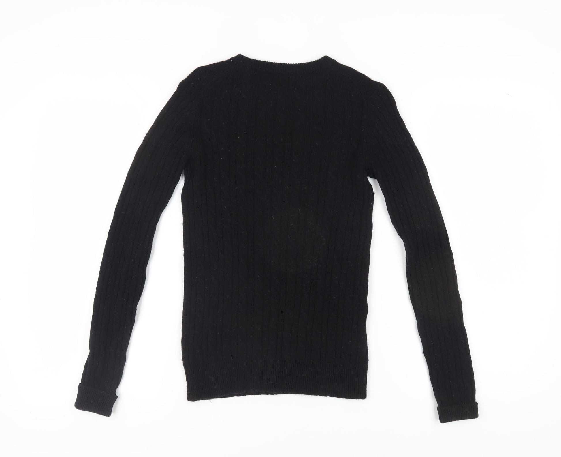 Jack Wills Women’s Black Cable-Knit Pullover Jumper Size 6