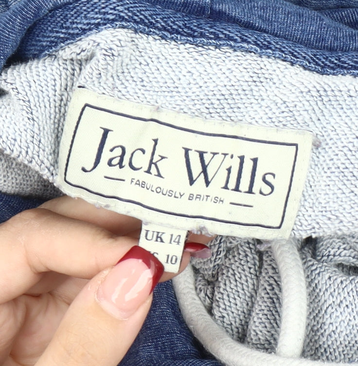 Jack Wills Women’s Blue Hoodie UK 14 Cotton Pullover Logo Print