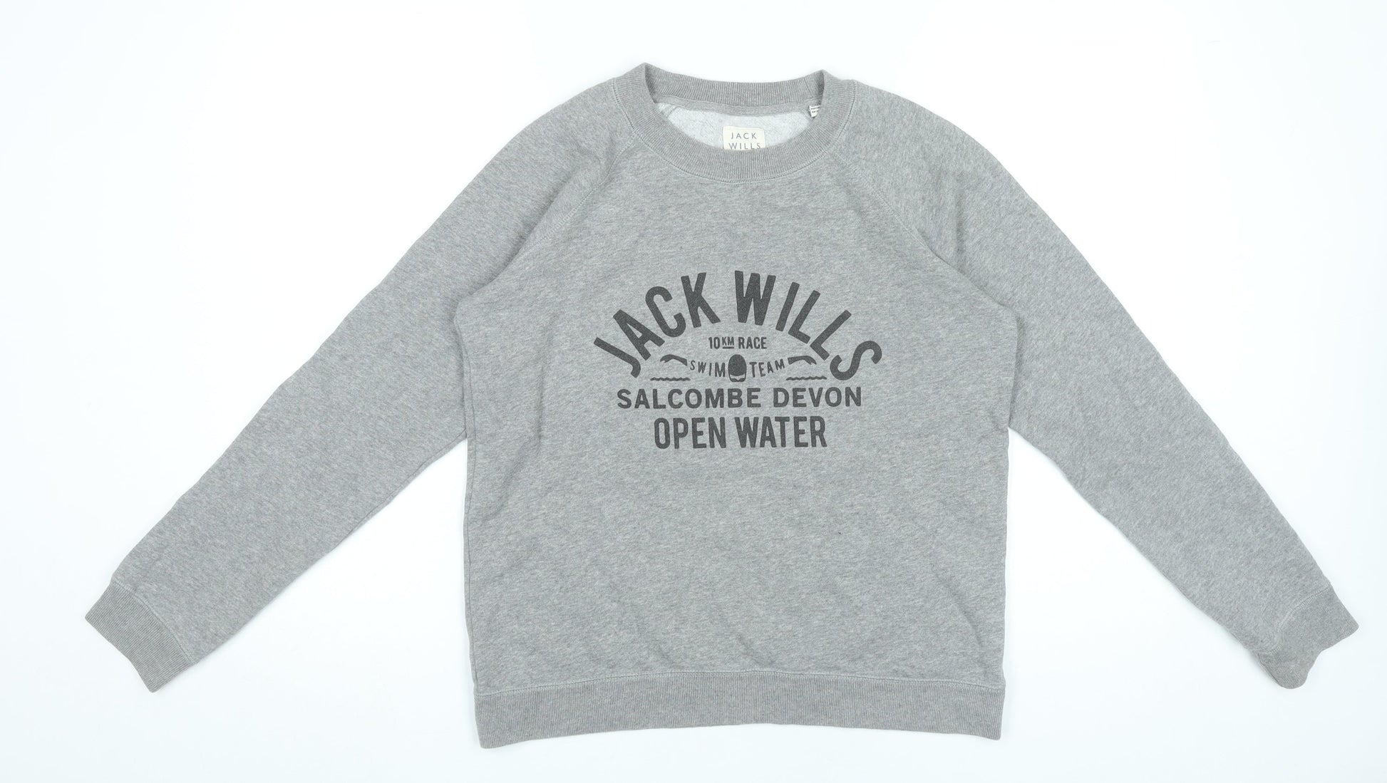 Jack Wills Women’s Grey Sweatshirt UK 12 Graphic Print Pullover