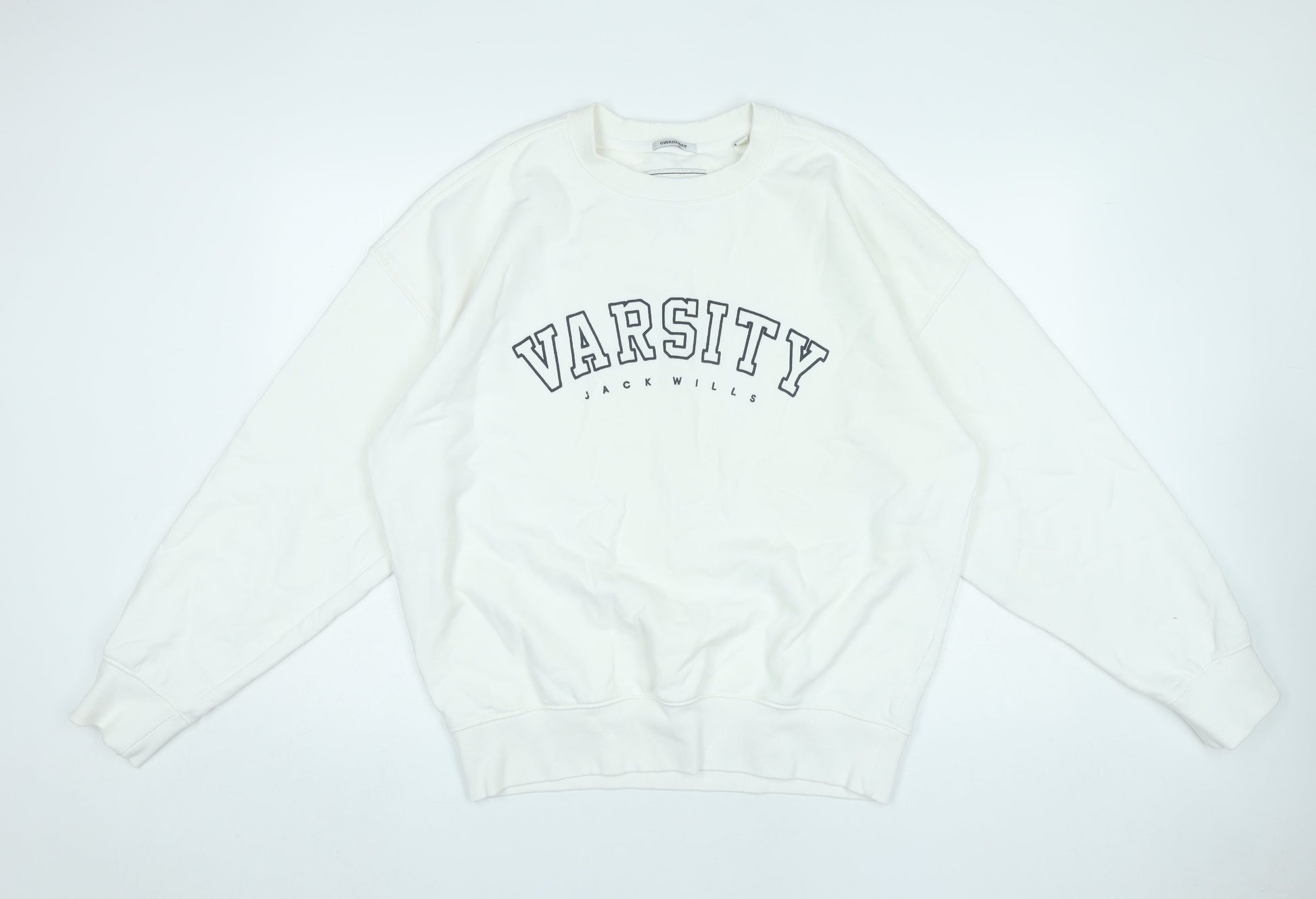 Jack Wills Women White Varsity Oversized Pullover Sweatshirt Size M