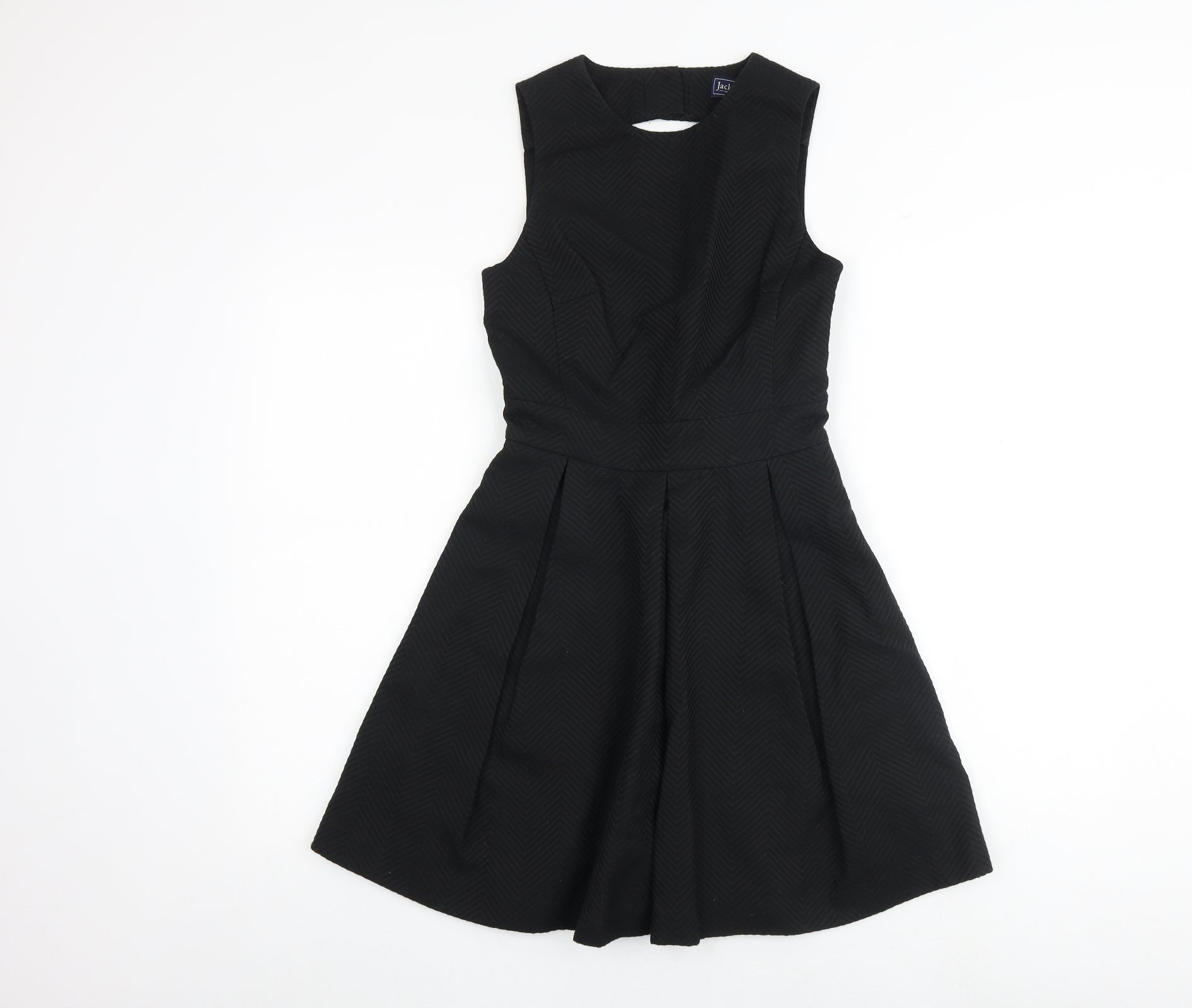 Jack Wills Womens Black Cotton Fit & Flare Size 6 Boat Neck Zip - Cut Out Back Detail