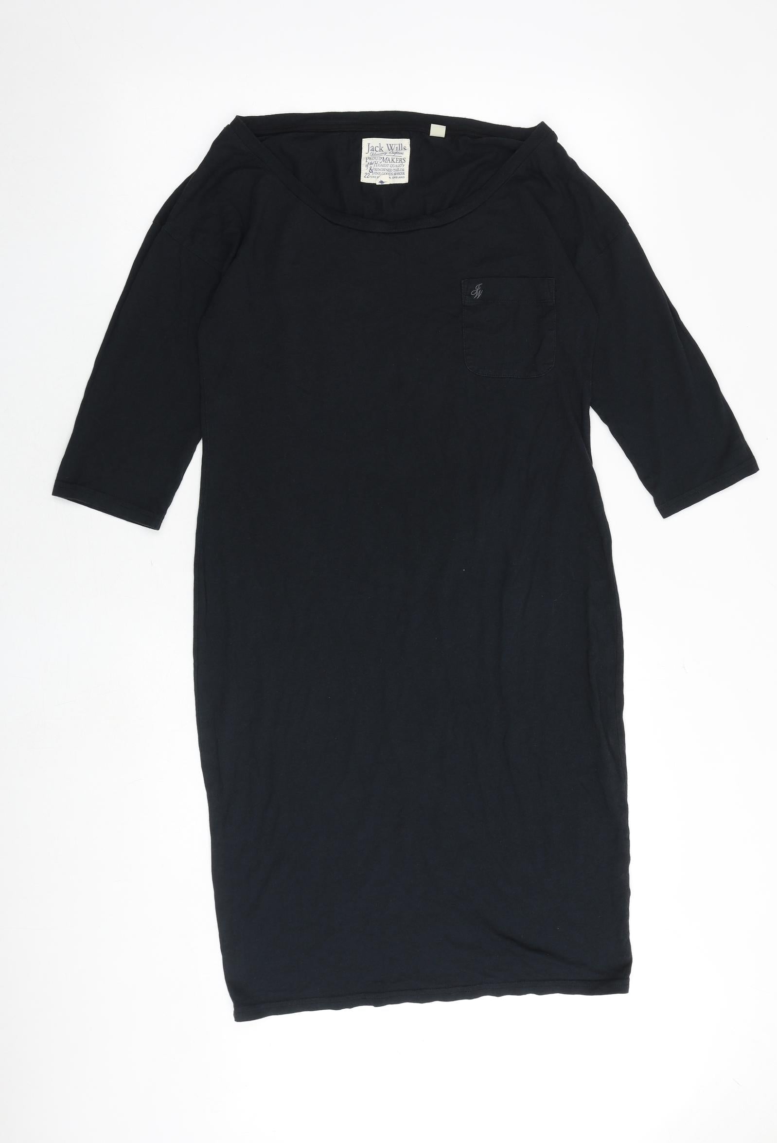 Jack Wills Womens Black Cotton Shift Size 10 Round Neck Pullover