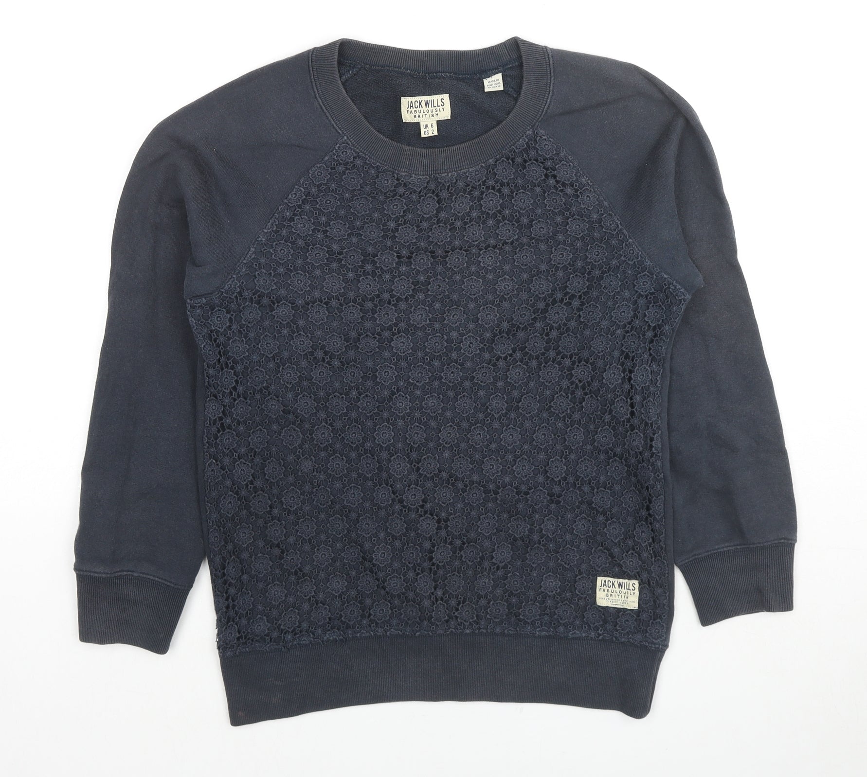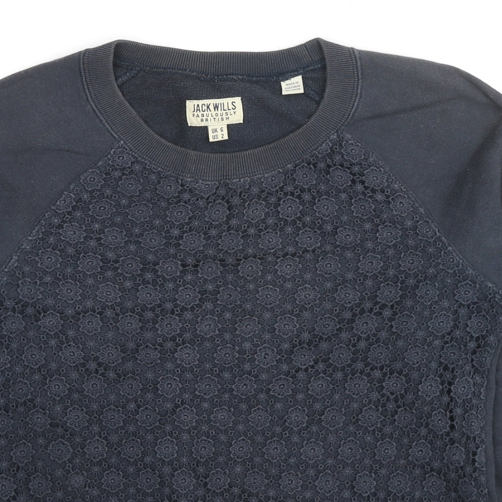 Jack Wills Womens Black Floral Cotton Pullover Sweatshirt Size 6 Pullover - Lace Detail