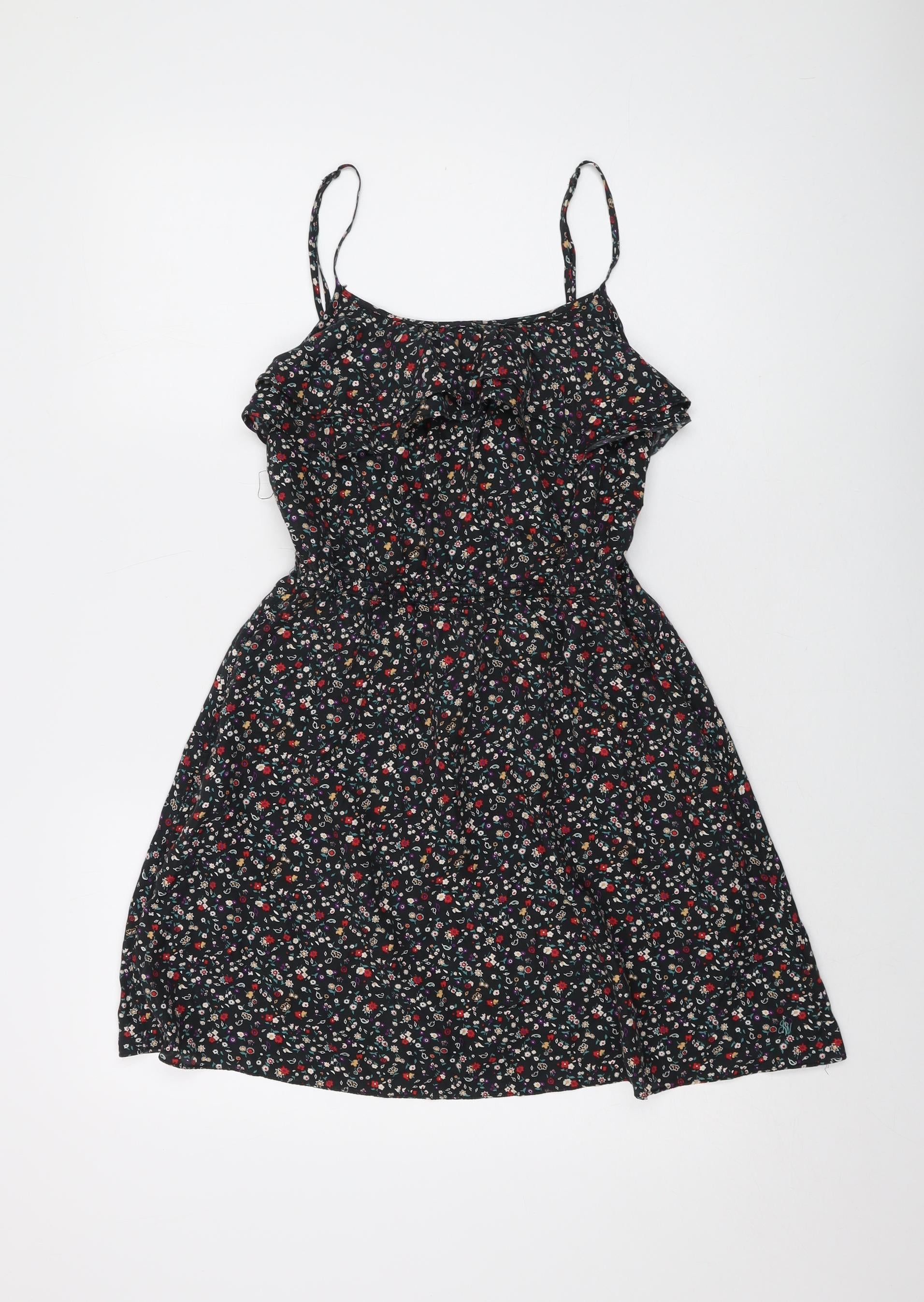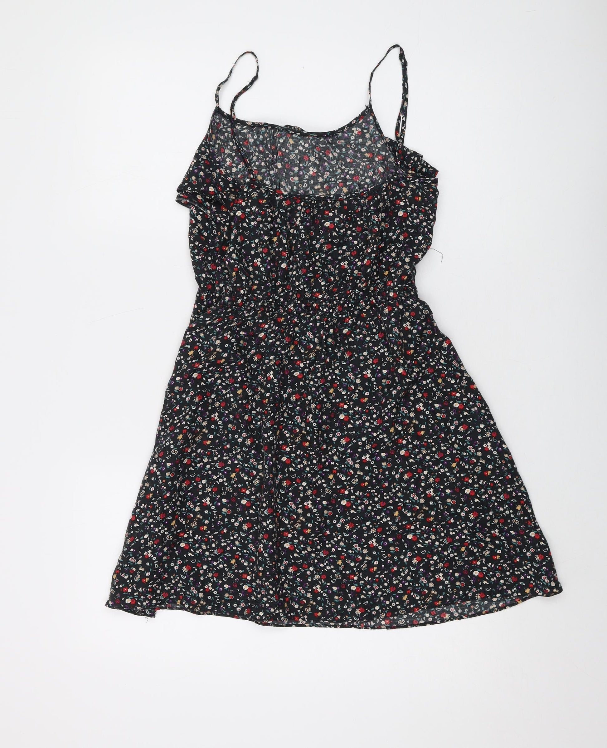 Jack Wills Womens Black Floral Silk Mini Size 8 Round Neck Pullover