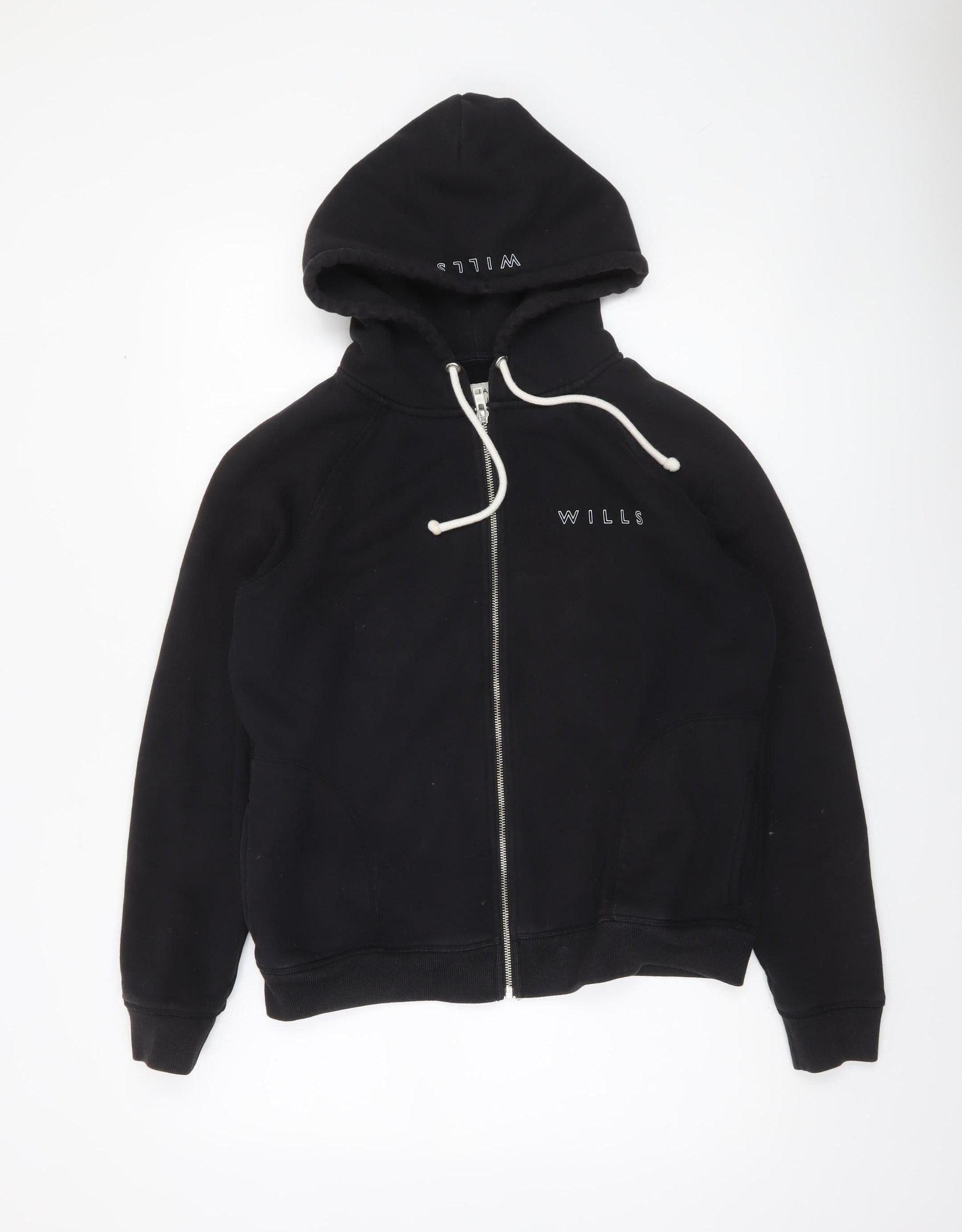 Jack Wills Women's Black Full Zip Hoodie Size 12 Cotton Blend