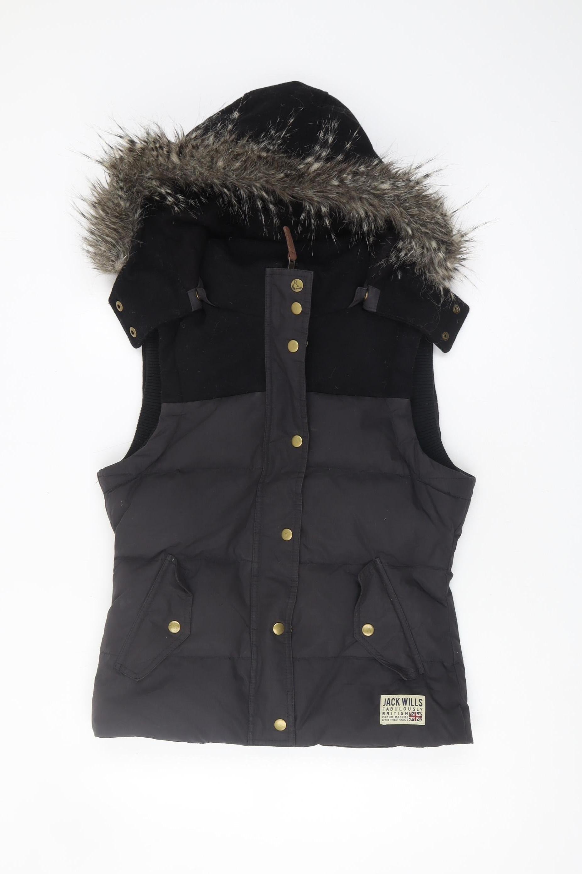 Jack Wills Women's Black Hooded Puffer Waistcoat Size 10