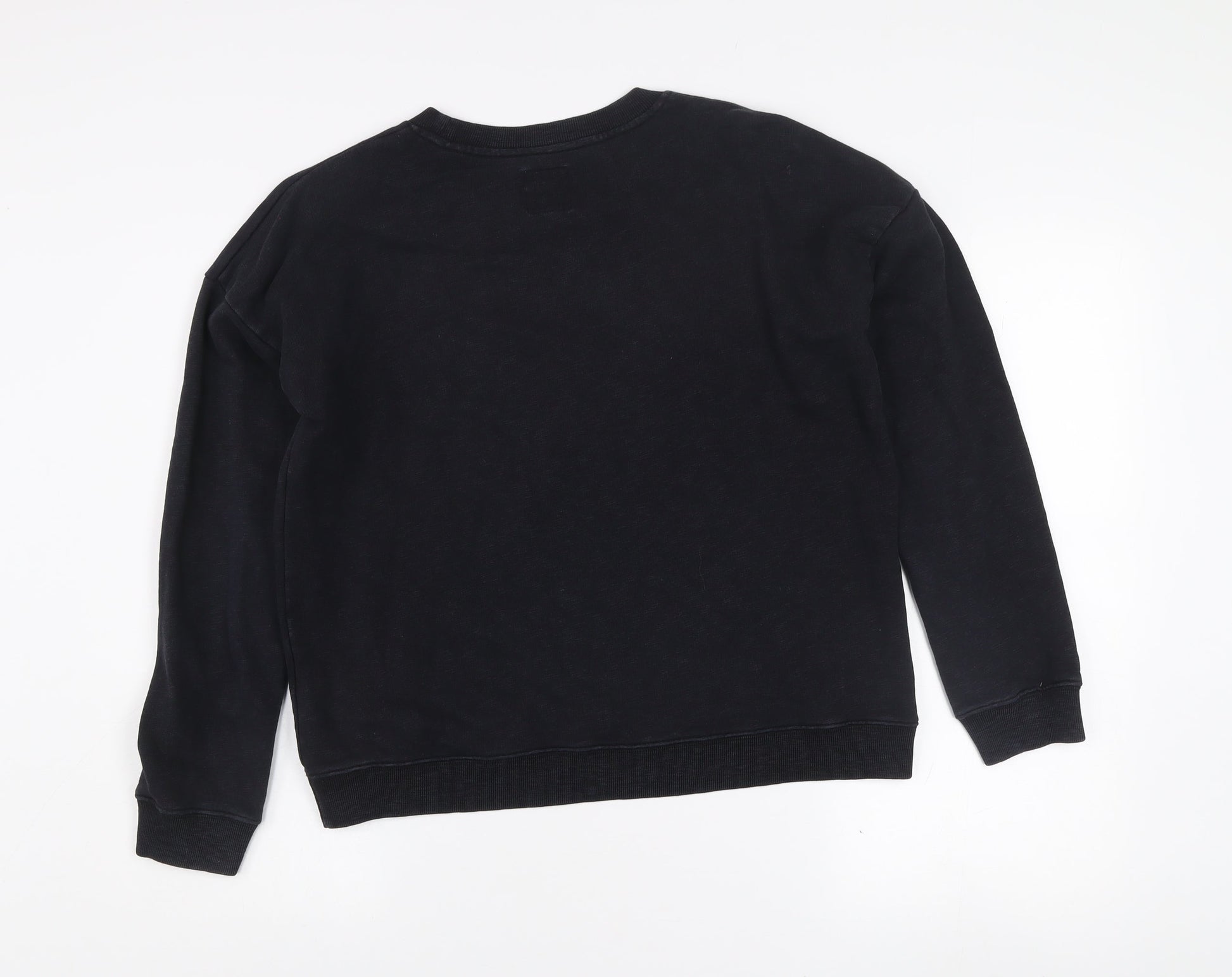 Jack Wills Womens Black Logo Sweatshirt UK 10 Classic Fit Crew Neck