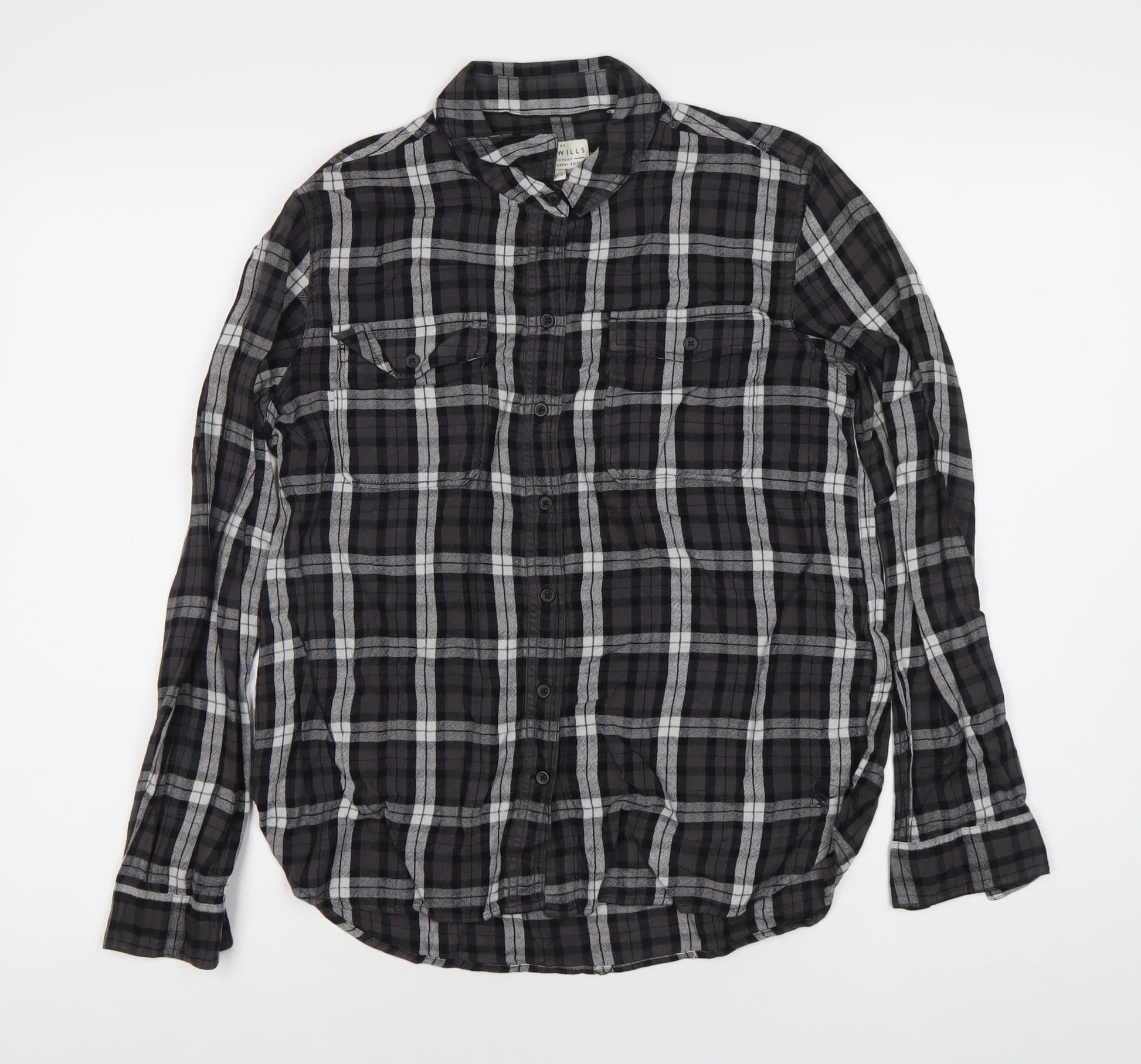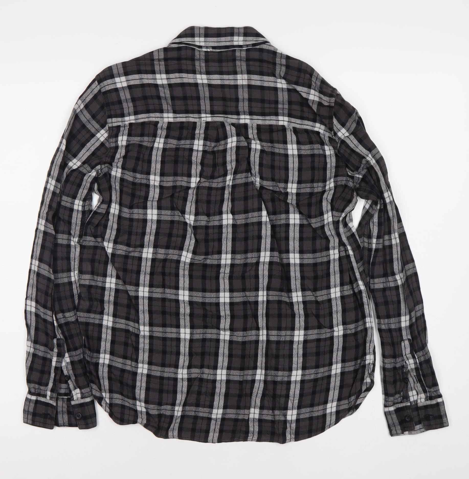 Jack Wills Womens Black Plaid Long Sleeve Button-Up Shirt UK 12