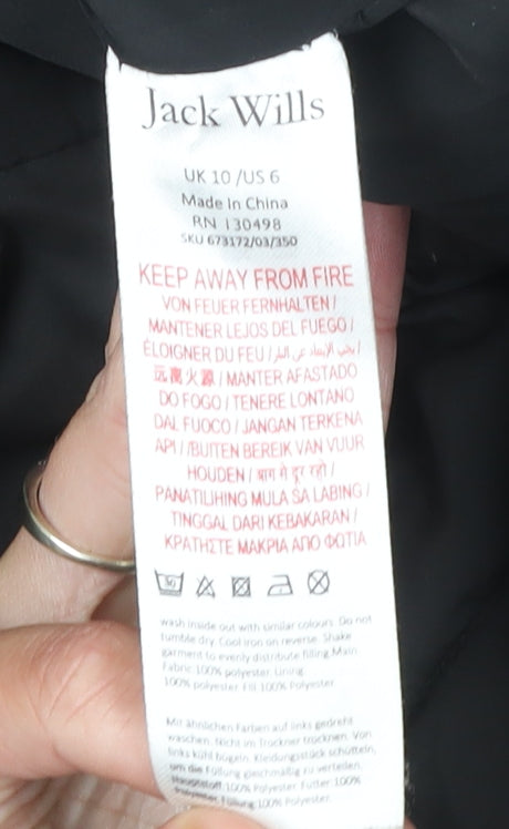 Jack Wills Women's Black Puffer Jacket Size 10 Hooded