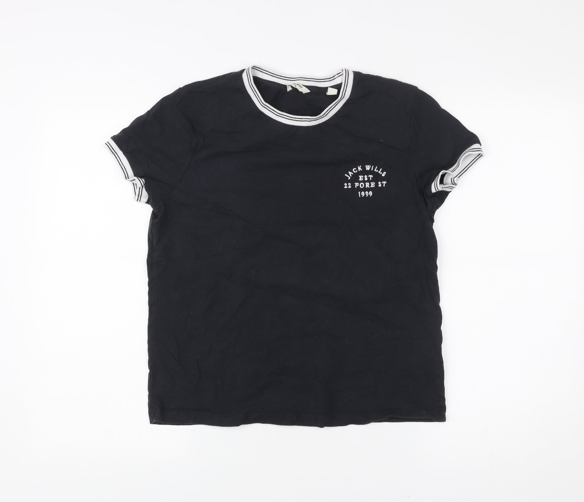 Jack Wills Womens Black Ringer T-Shirt Size S Cotton Casual