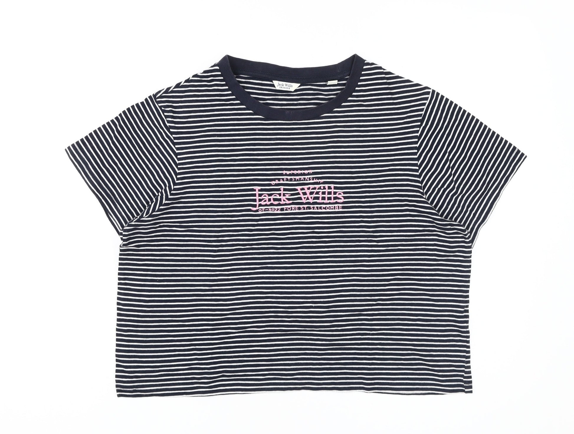 Jack Wills Women's Black Striped T-Shirt, Size 10