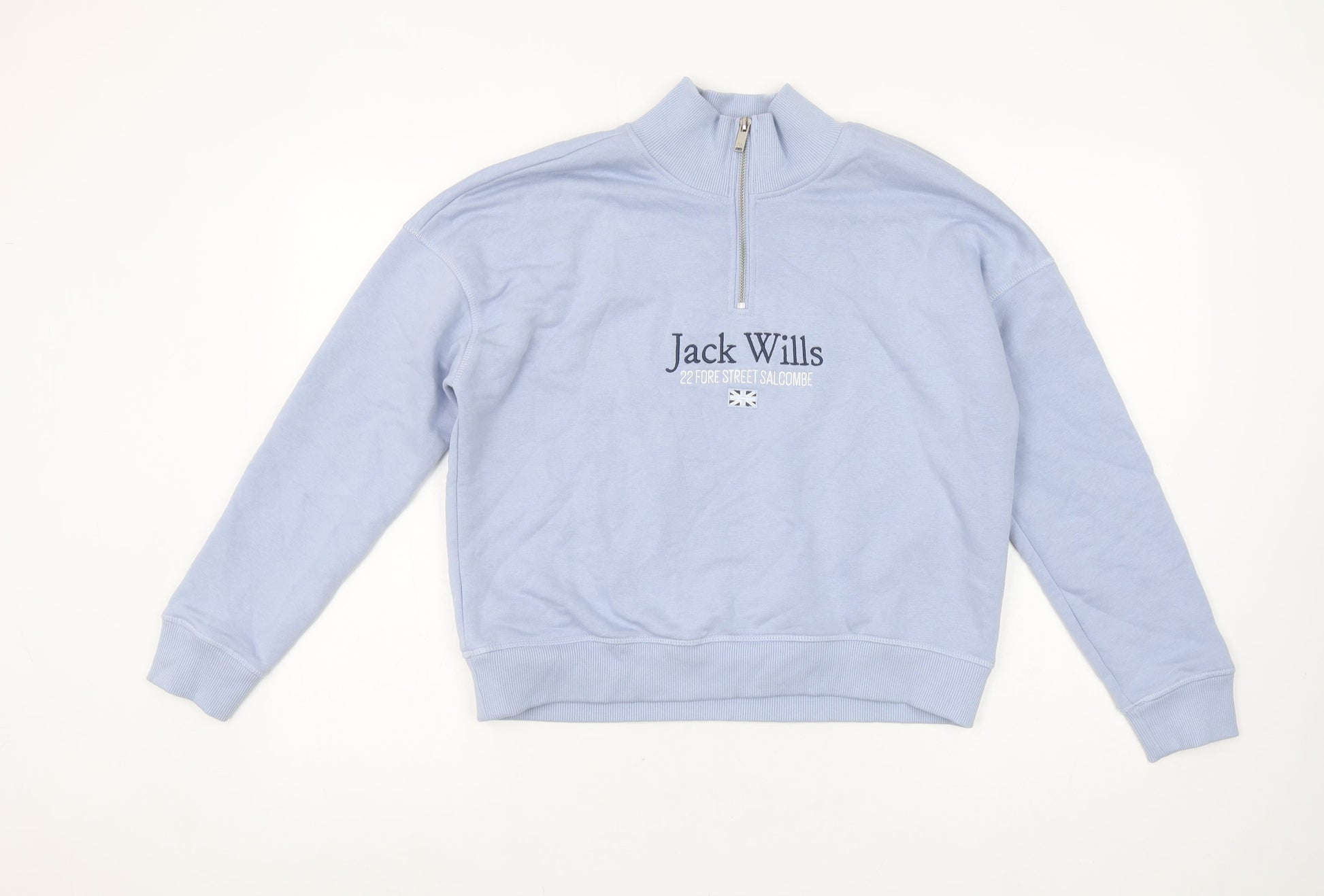 Jack Wills Women's Blue 1/4 Zip Sweatshirt UK 6 Cotton Blend
