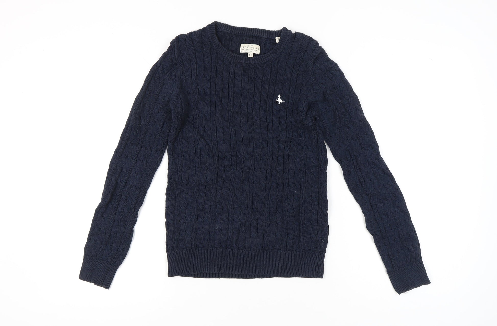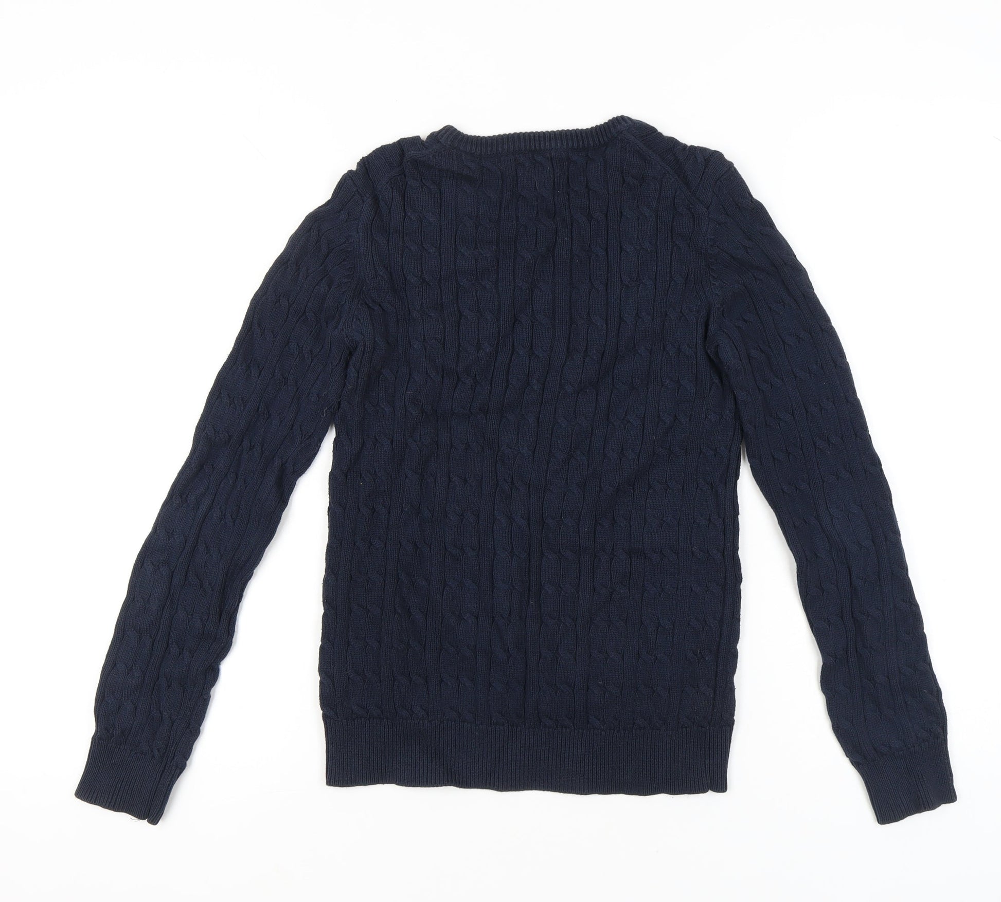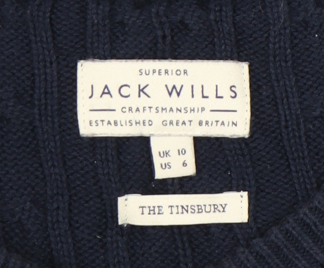 Jack Wills Womens Blue Cable-Knit Cotton Jumper UK 10