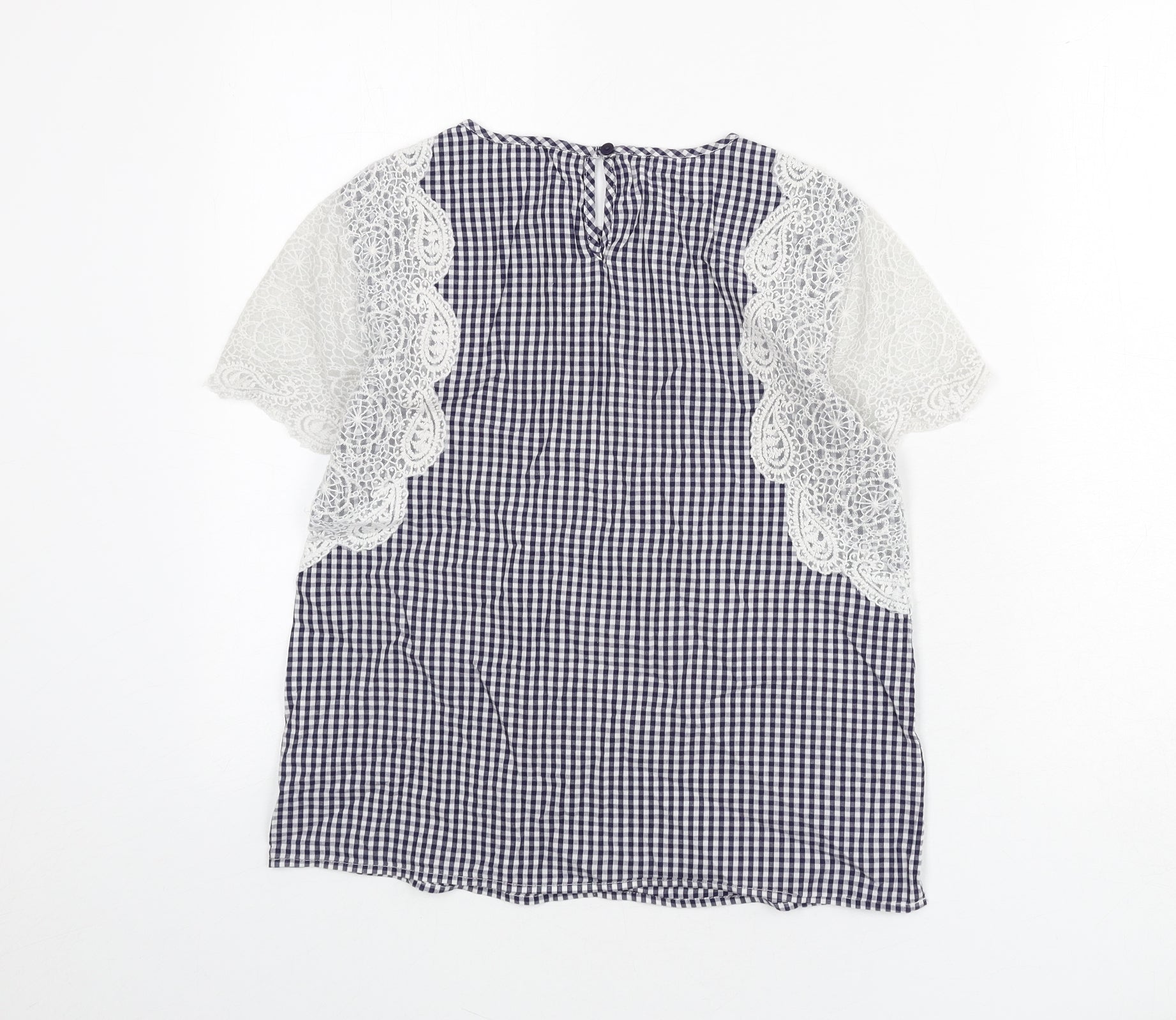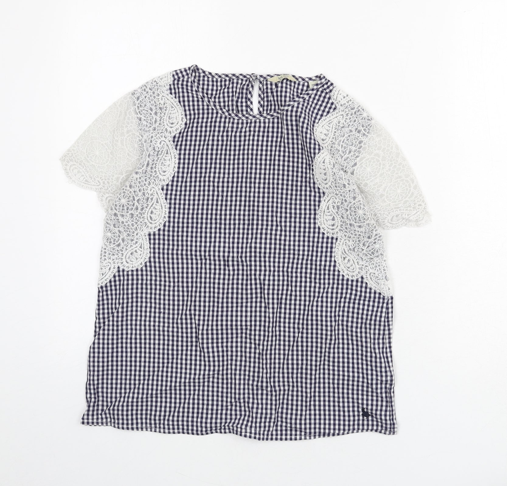 Jack Wills Womens Blue Check Cotton Basic Blouse Size 10 Round Neck - Lace Sleeves