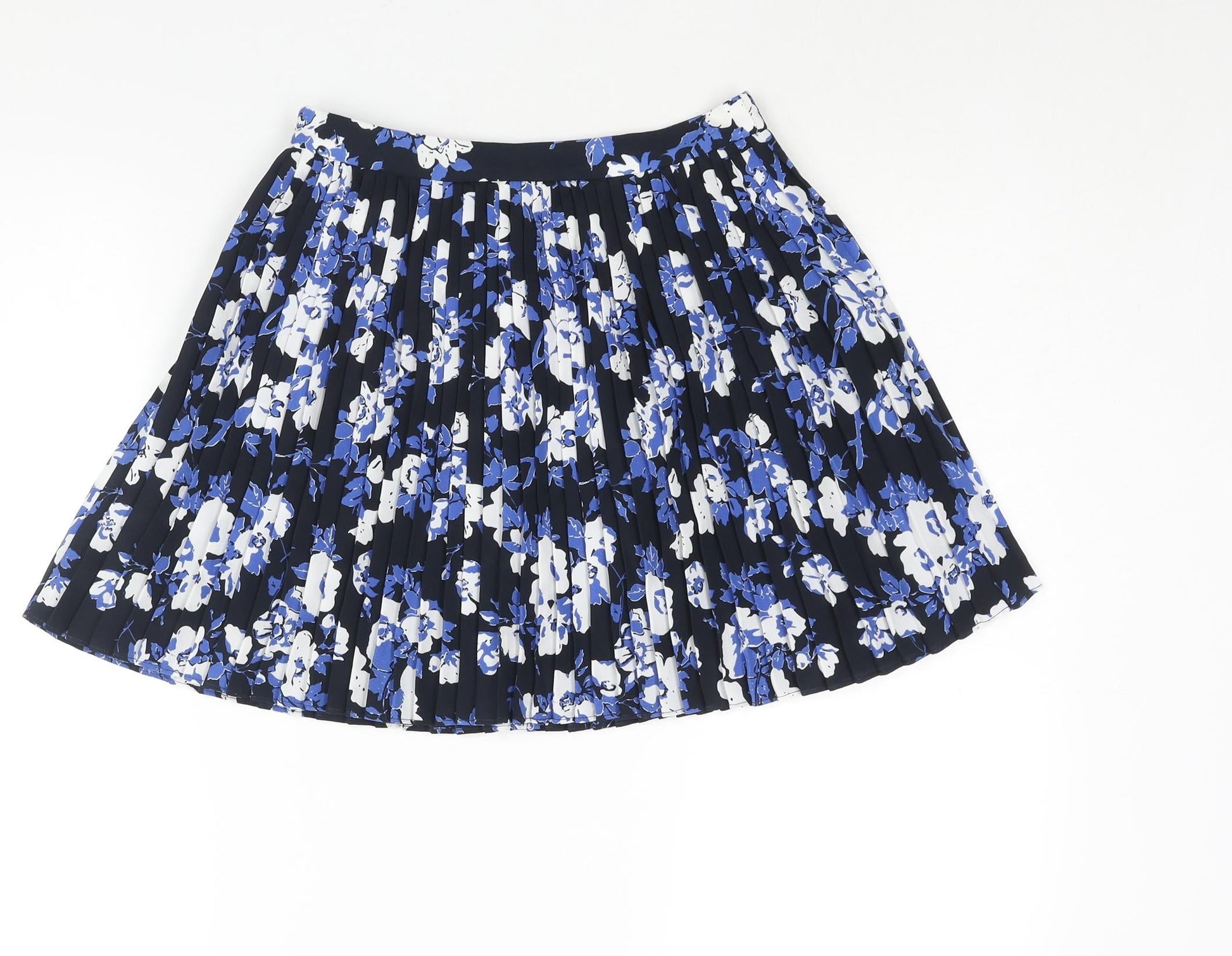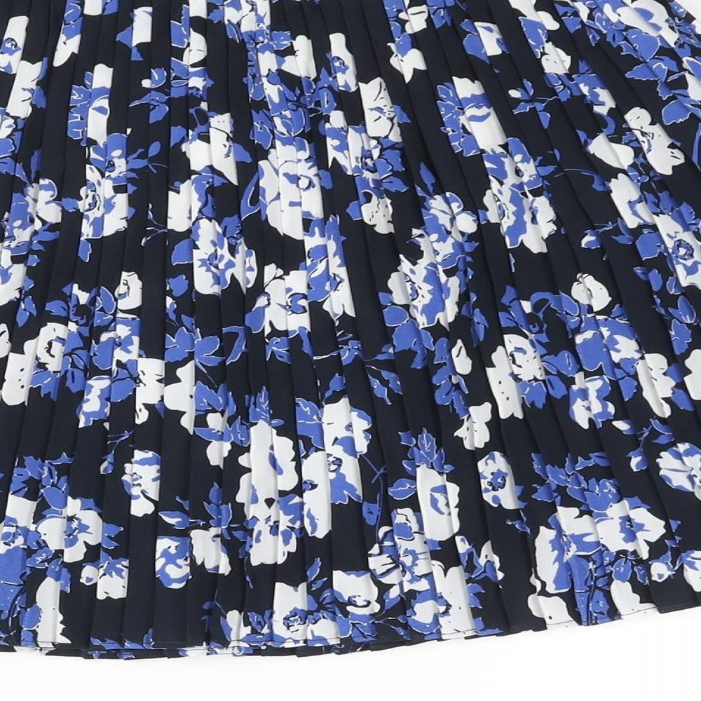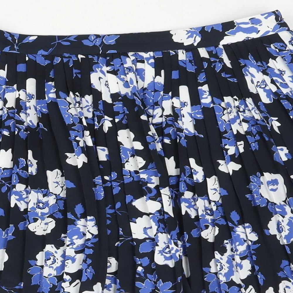Jack Wills Womens Blue Floral Polyester Pleated Skirt Size 8 Zip