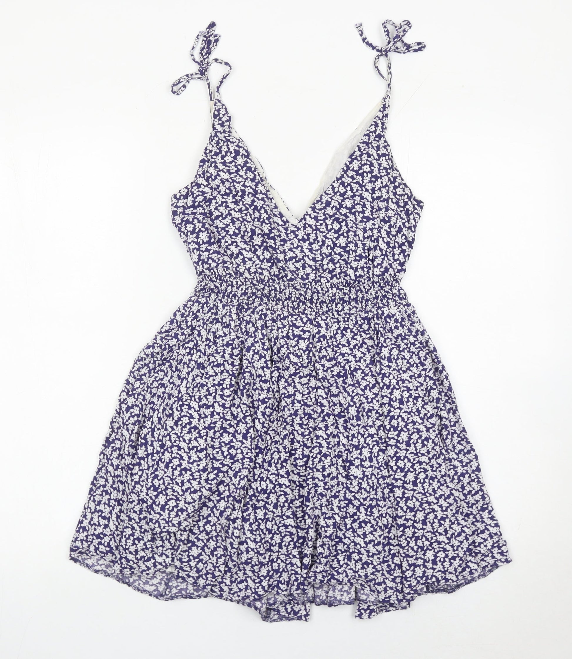 Jack Wills Womens Blue Floral Skater Dress Size 6 Summer V-Neck
