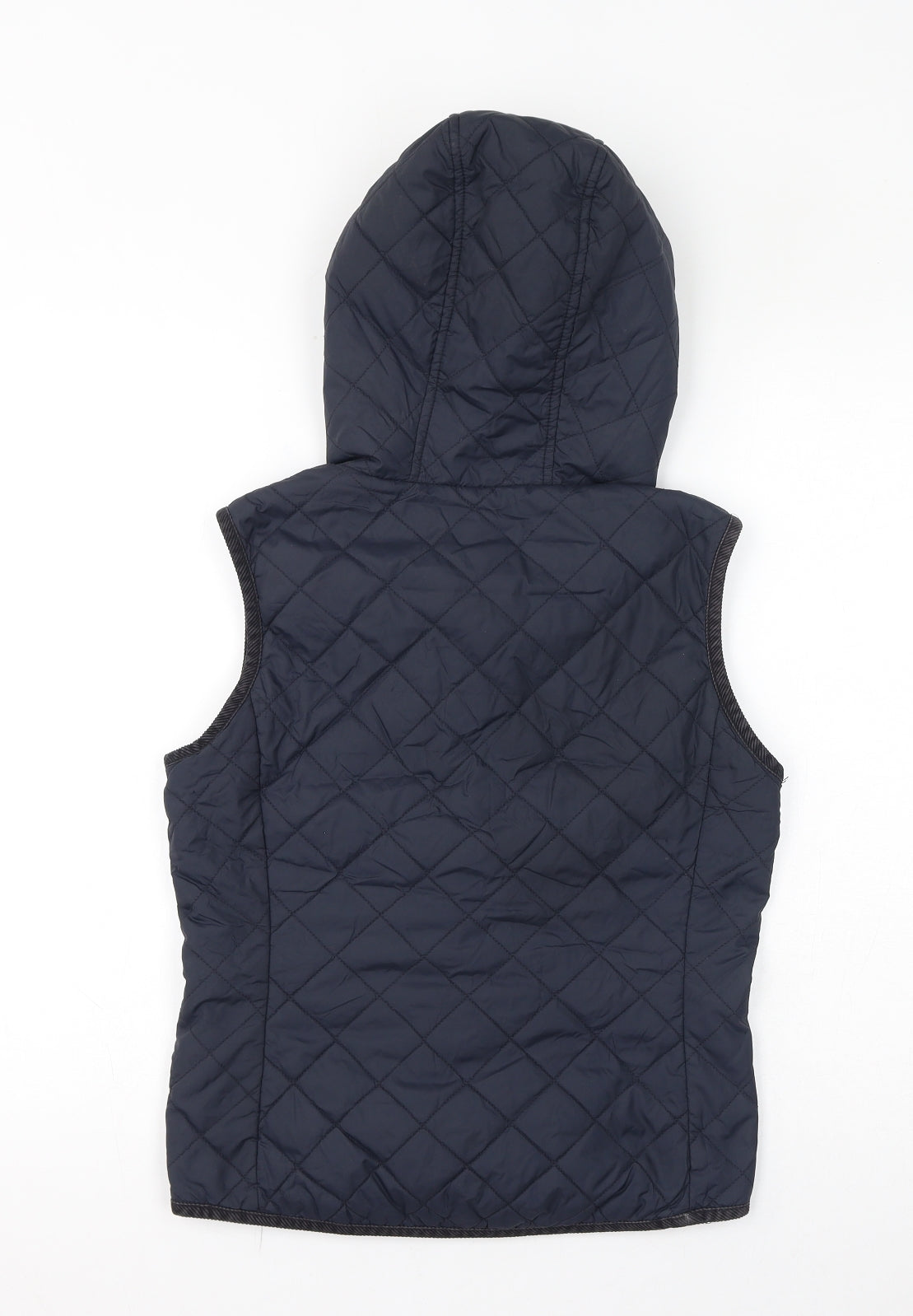 Jack Wills Womens Blue Gilet Jacket Size 8 Button - Quilted, Hooded