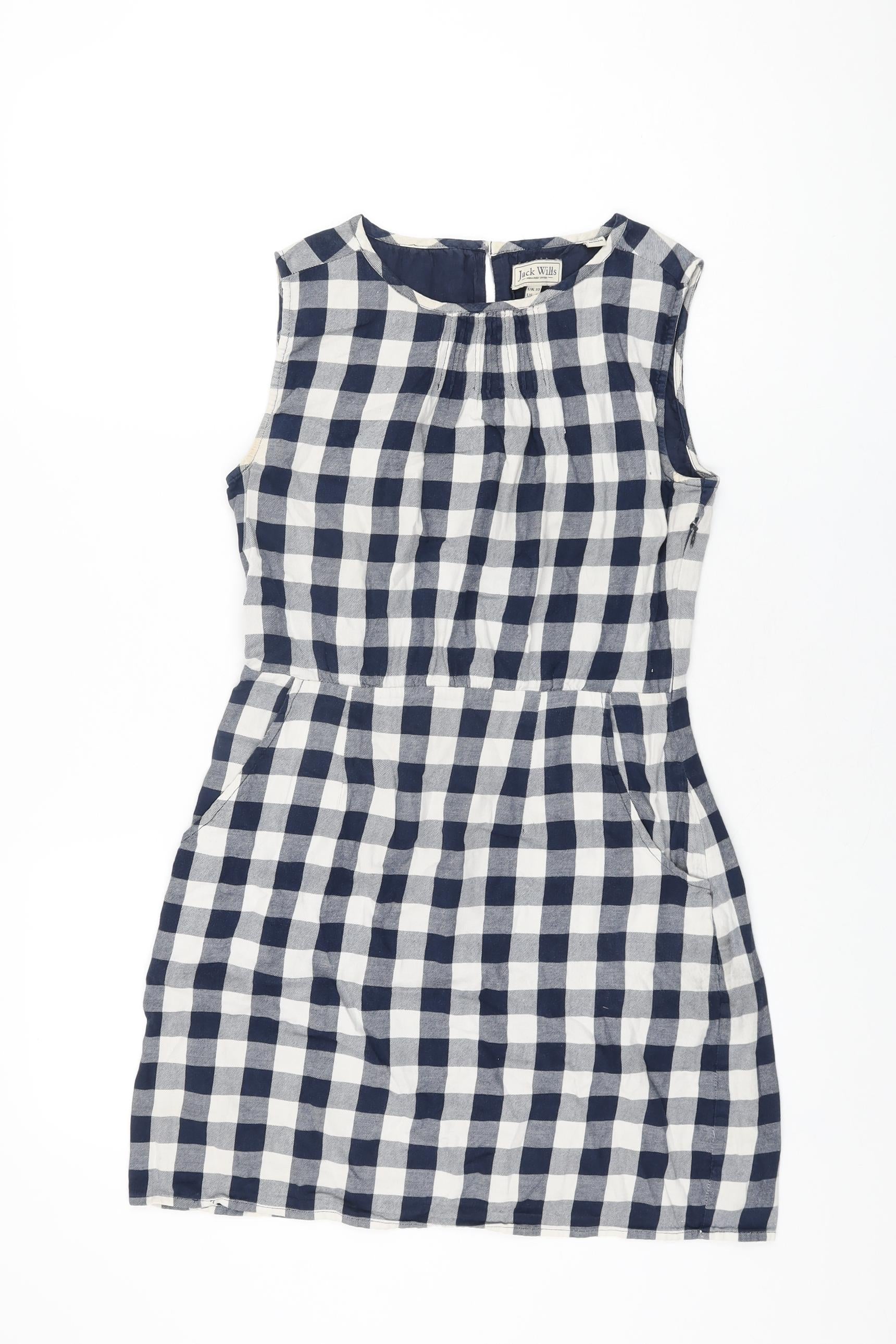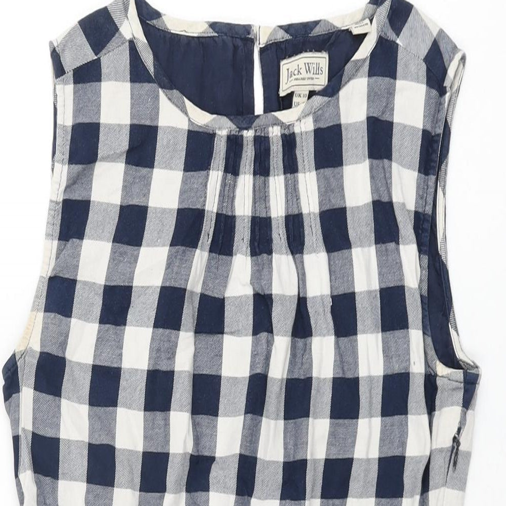 Jack Wills Womens Blue Gingham Cotton Mini Size 10 Round Neck Zip