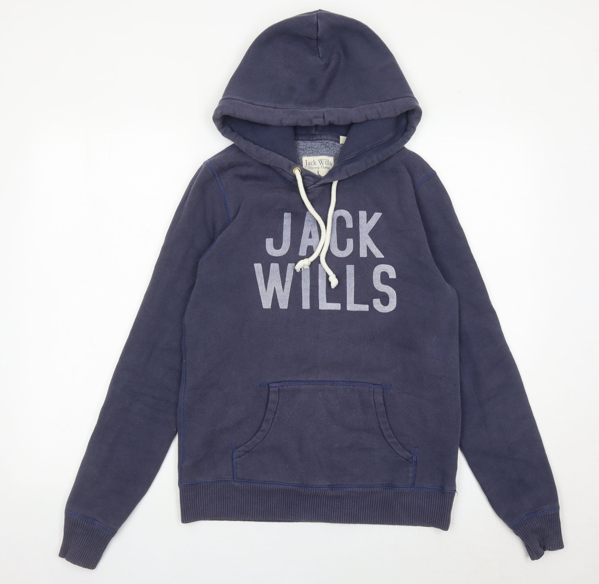 Jack Wills Womens Blue Hoodie UK 10 Pullover Cotton Blend Logo Print