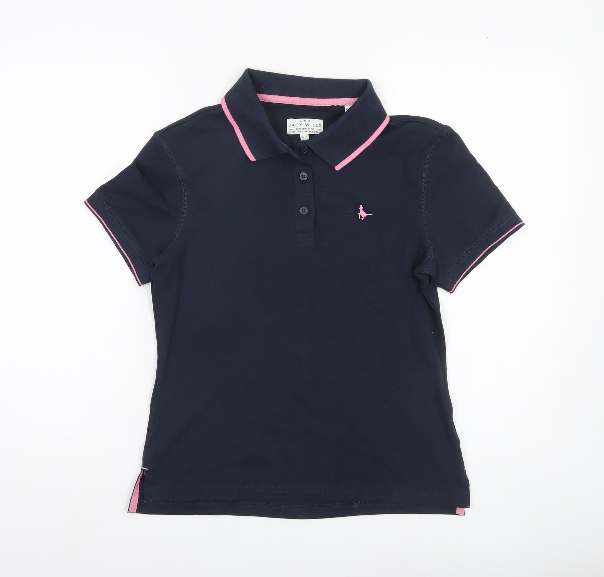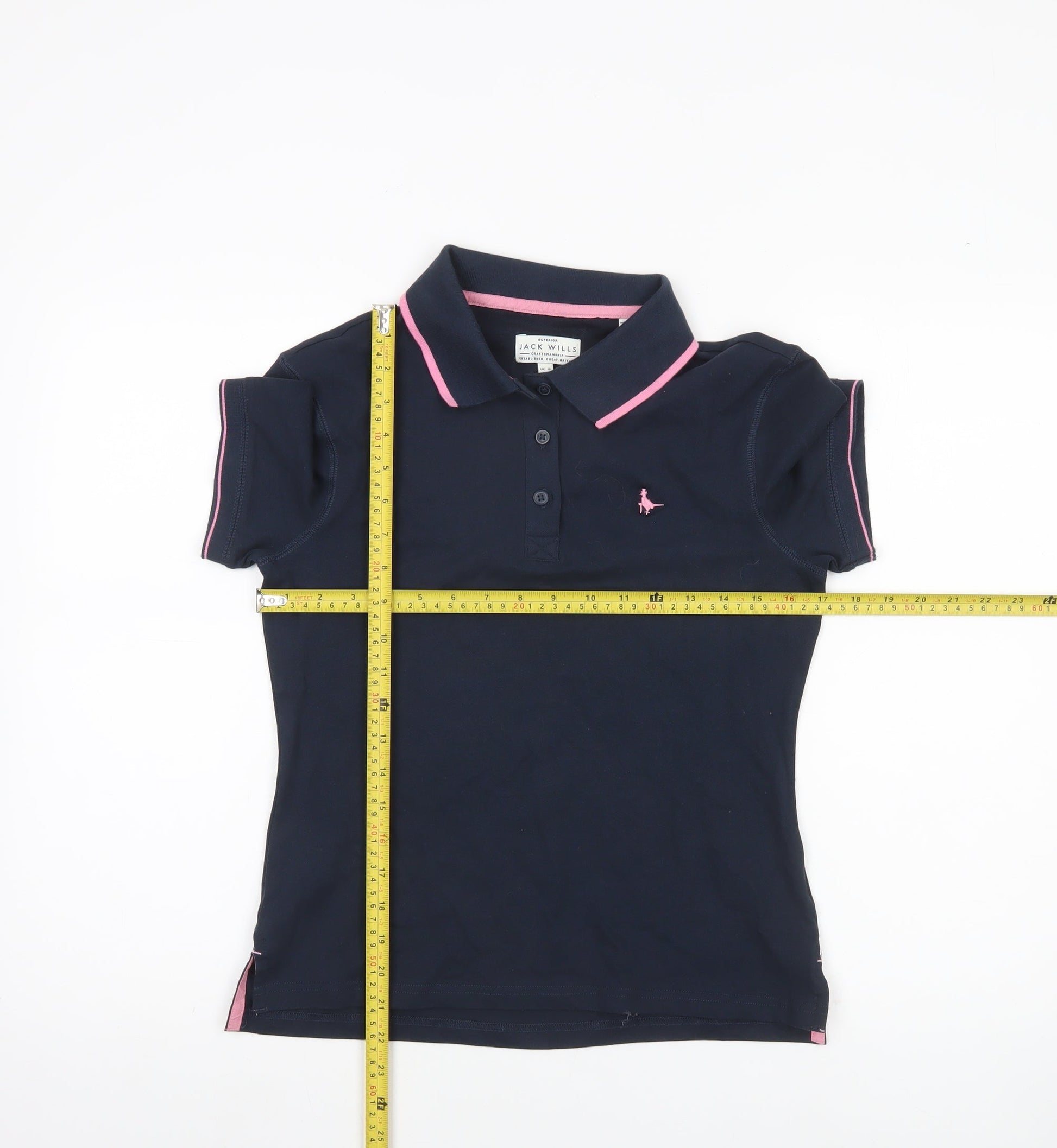 Jack Wills Womens Blue Polo Shirt UK 10 Slim Fit Cotton Stretch