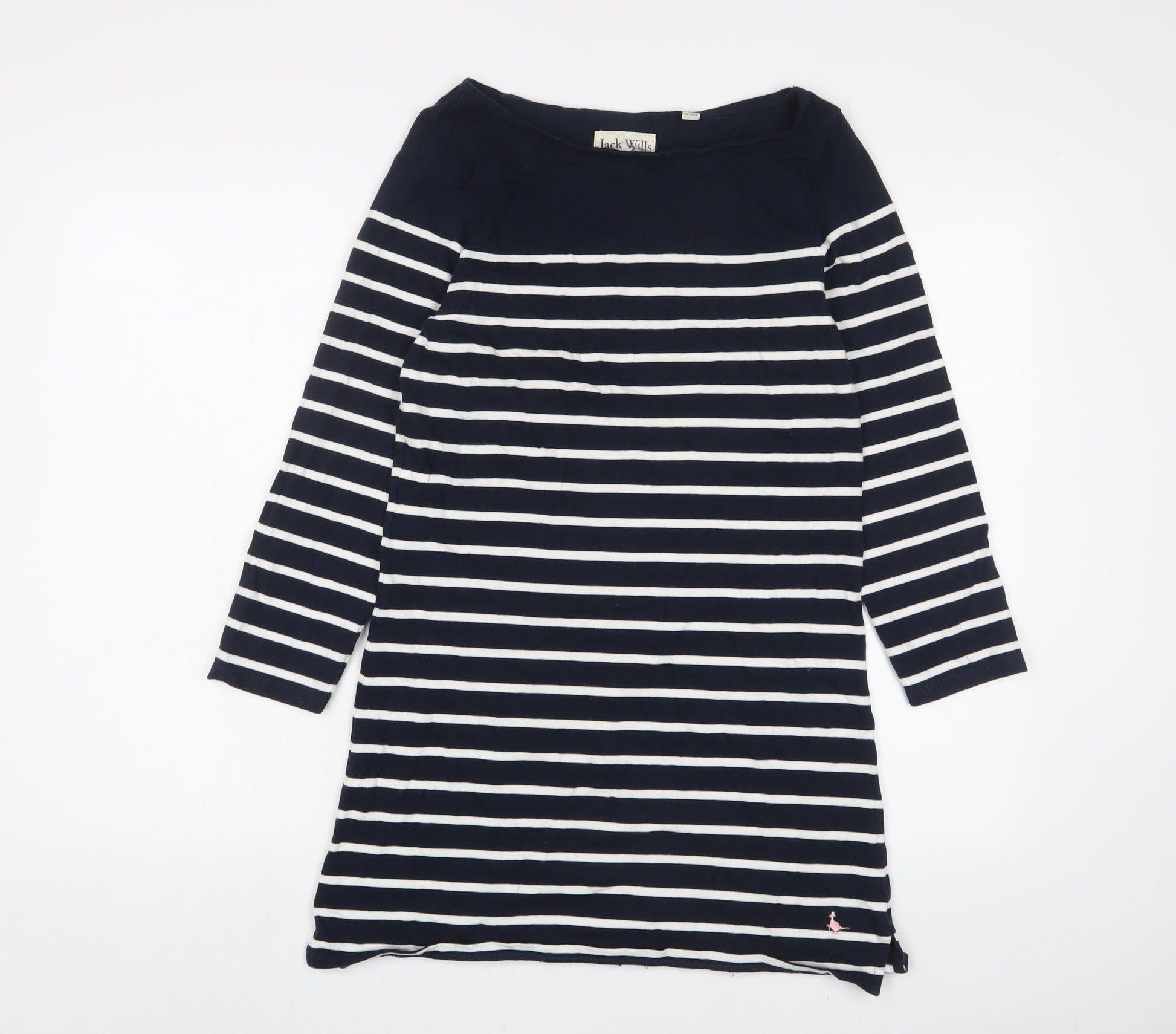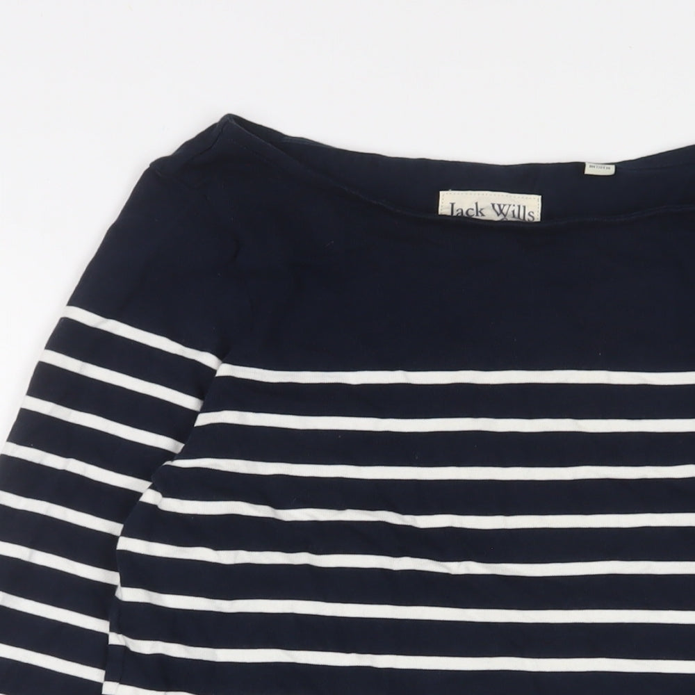 Jack Wills Womens Blue Striped Cotton Jumper Dress Size 12 Boat Neck Pullover