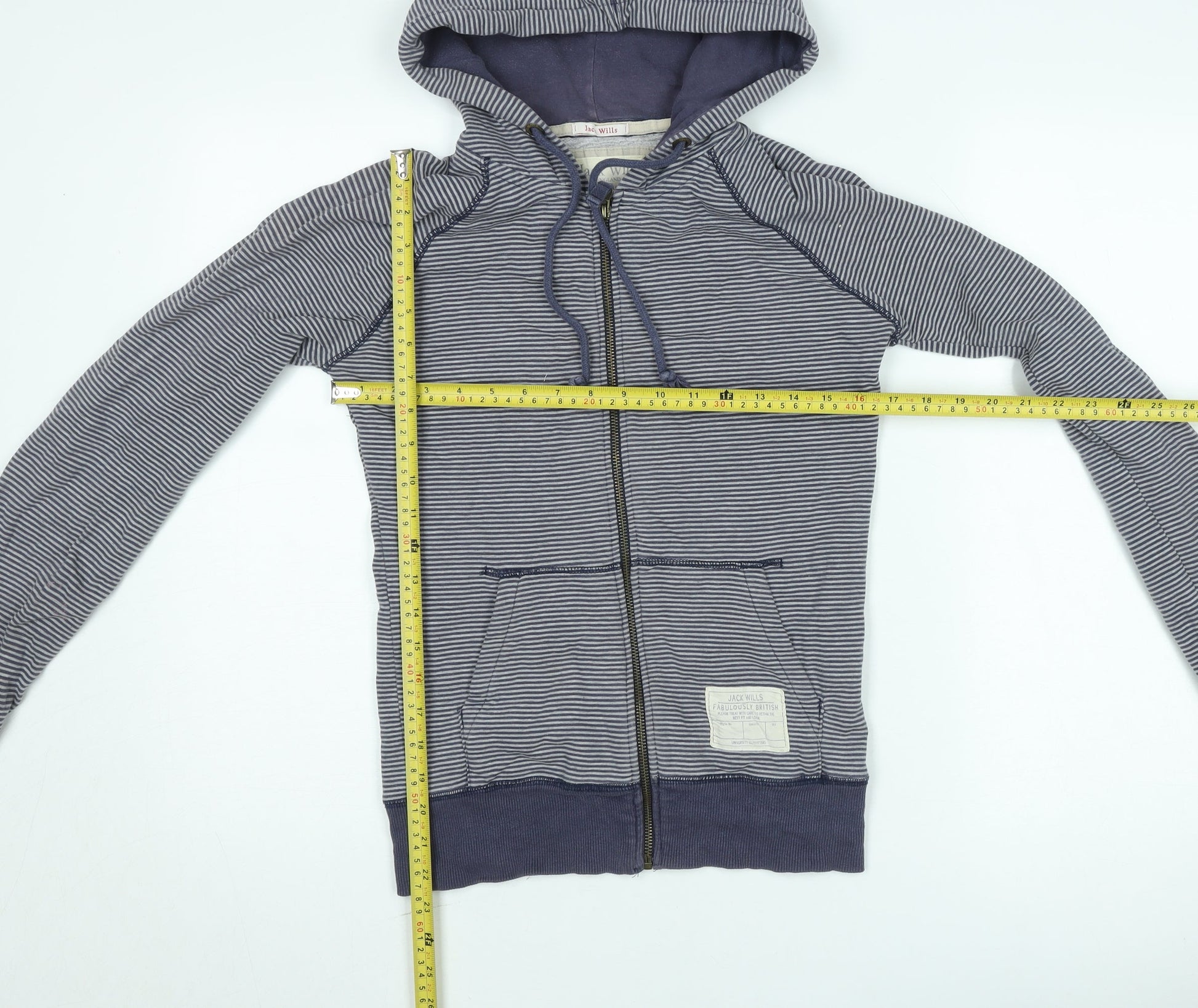 Jack Wills Women's Blue Striped Full Zip Hoodie Jumper Size 10