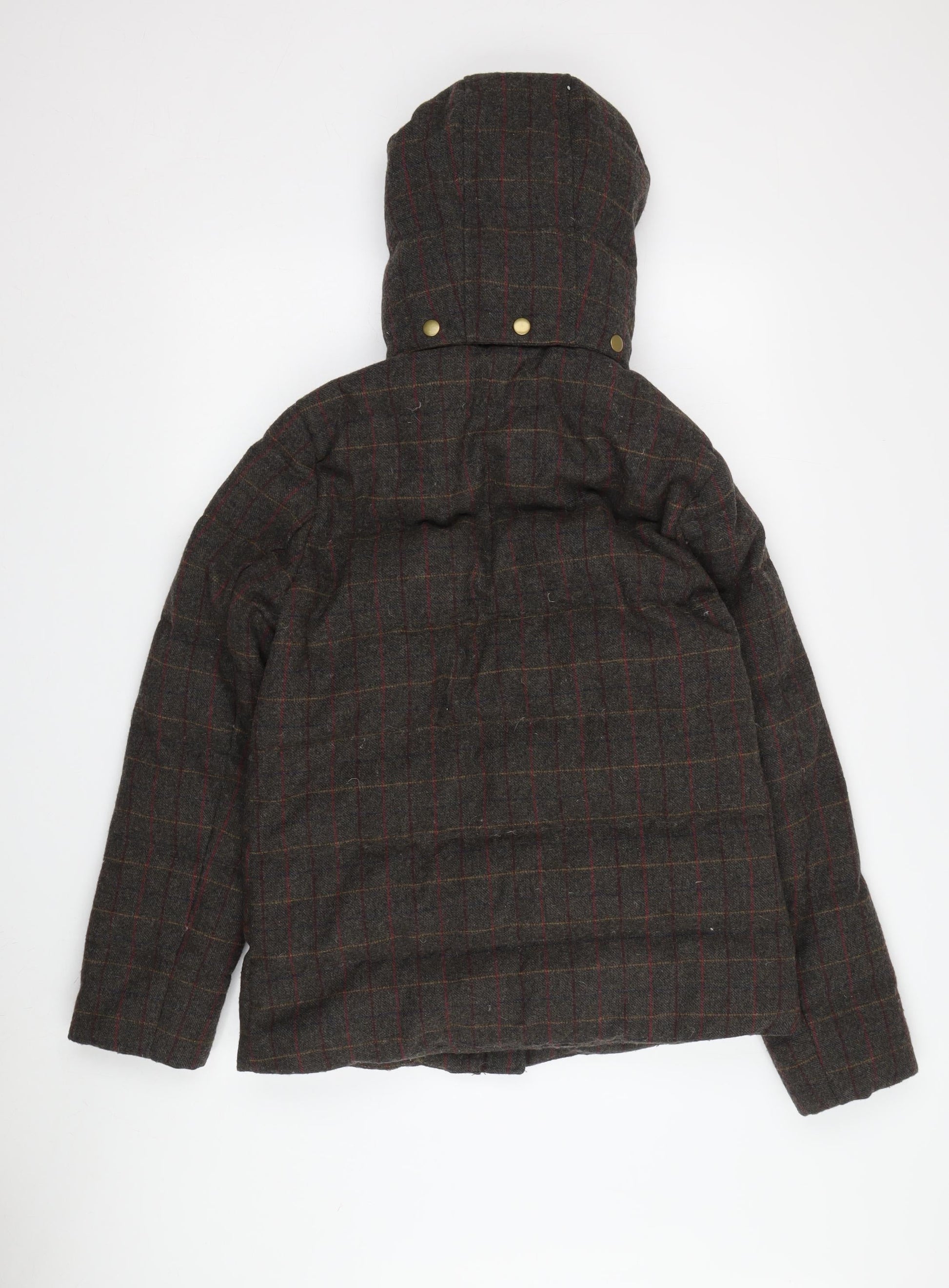 Jack Wills Women's Brown Plaid Wool Blend Hooded Puffer Jacket Size 12