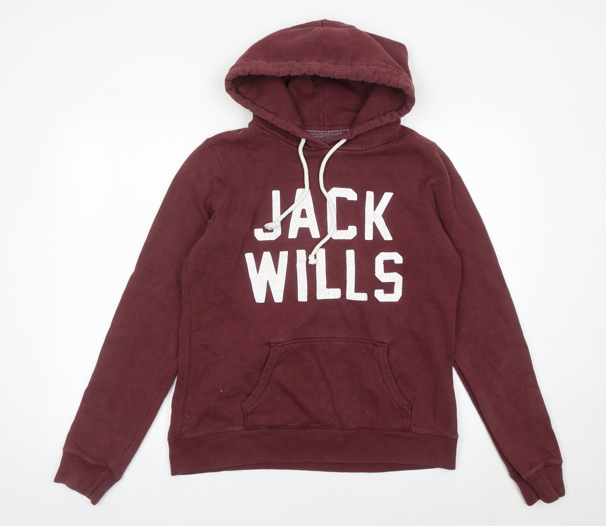 Jack Wills Womens Burgundy Hoodie UK 14 Cotton Blend Pullover